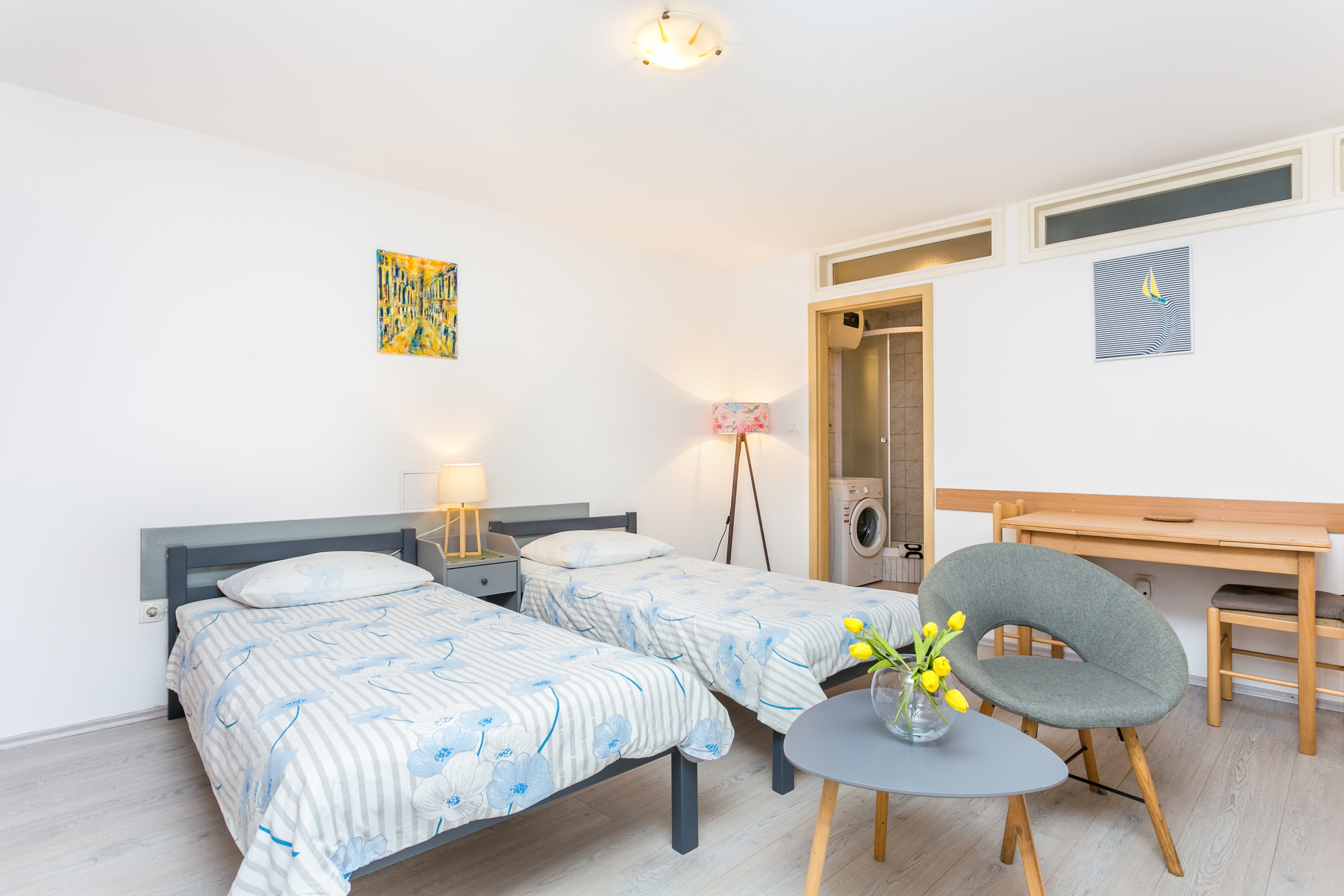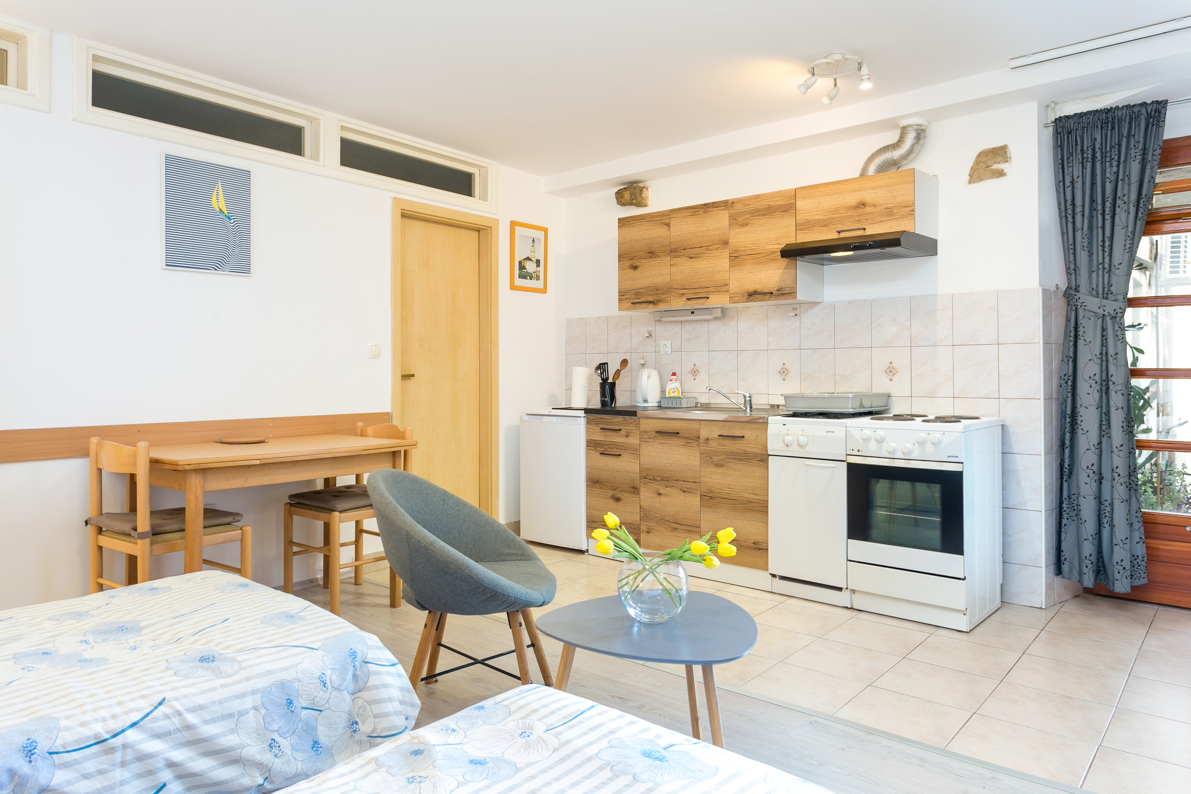 Studio flat can accommodate 2 guests. Beds are situated in 1 sleeping rooms, within 27m2. There is no balcony or terrace in the reserved accommodation unit. INCLUDED IN THE PRICE: tourist tax, final cleaning, air-conditioning, internet, iron, ironing board, hairdryer. OBLIGATORY ADDITIONAL COSTS: short stay fee (surcharge depending on a number of booked nights: 30% - 1, 20% - 2, 10% - 3). The availability of additional services for your chosen dates of stay, as well as their prices (if none are listed) must be checked ahead of time. Any additional services not shown in the price calculation are payable directly to the property owner and only if used by the visitor.