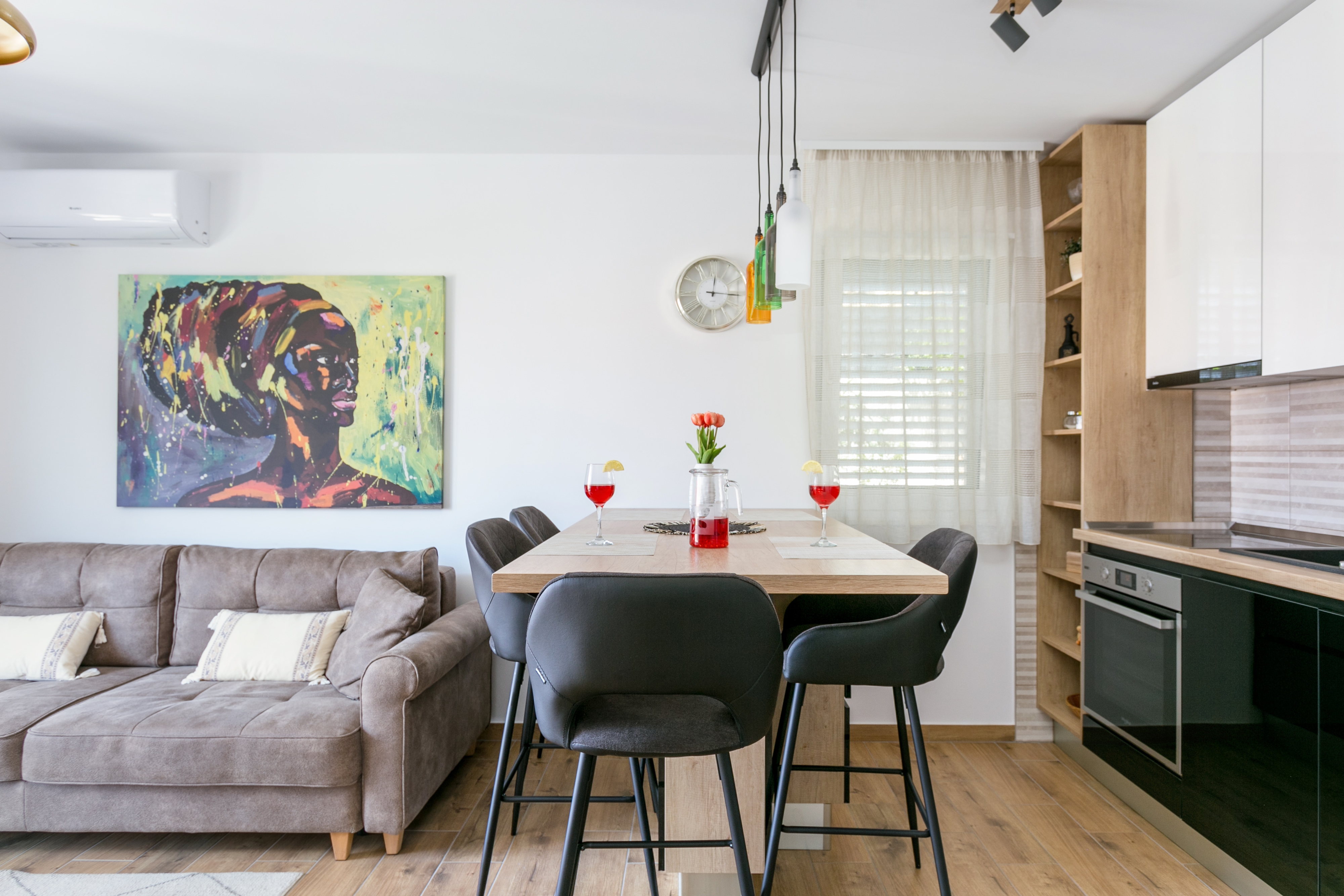 Apartment can accommodate 4 guests. Beds are situated in 1 sleeping rooms, but also in the living room, within 42m2. Guests can use a private balcony to enjoy the warm summer evenings. The apartment offers the sea view. Food can be prepared using barbecue which is shared with other guests too. Reserved accommodation unit has a shared terrace. INCLUDED IN THE PRICE: tourist tax, final cleaning, air-conditioning, parking, internet, iron, ironing board, hairdryer. The availability of additional services for your chosen dates of stay, as well as their prices (if none are listed) must be checked ahead of time. Any additional services not shown in the price calculation are payable directly to the property owner and only if used by the visitor.