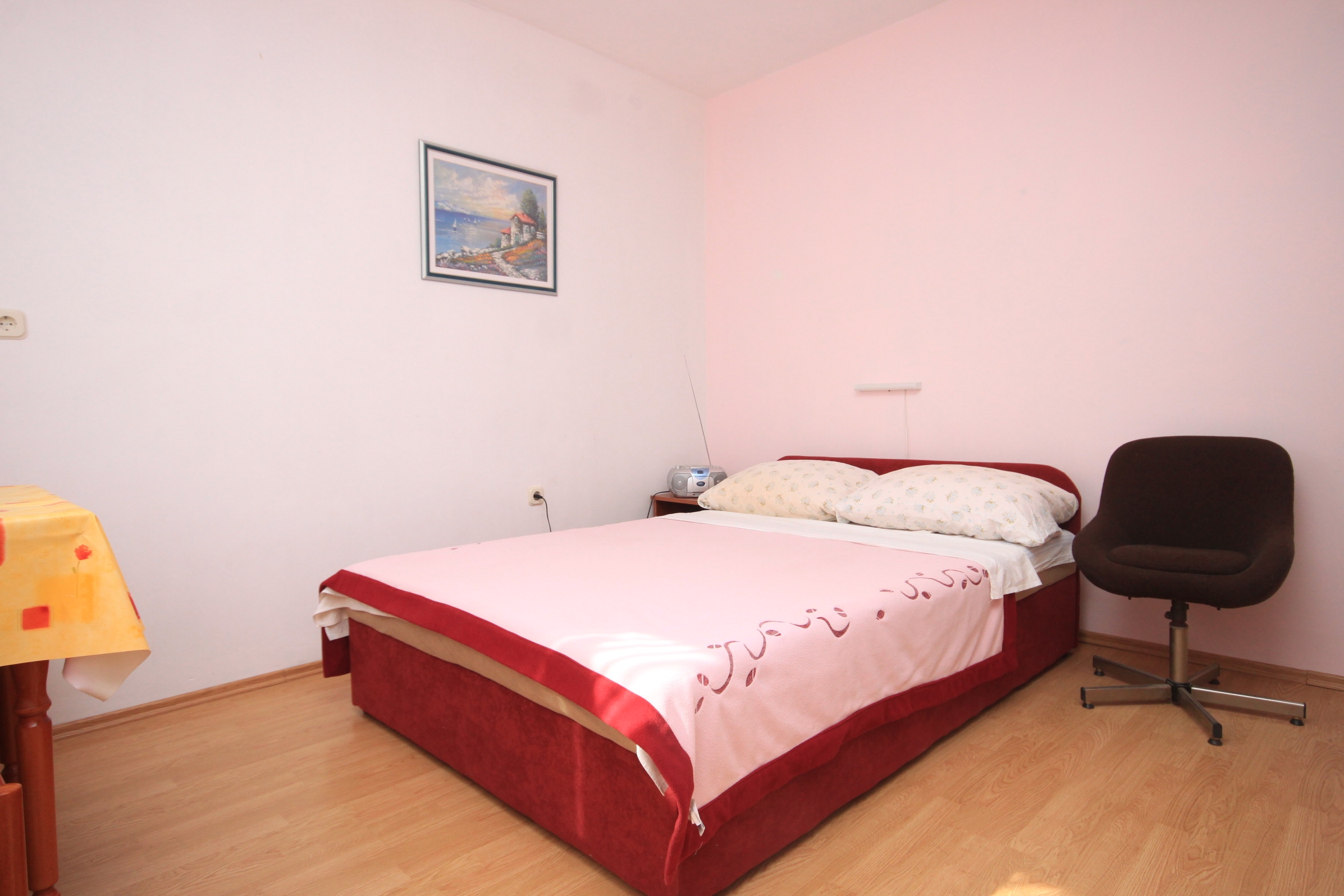 Studio flat can accommodate 2 guests. Beds are situated in 1 sleeping rooms, within 18m2. Guests can use a private terrace to enjoy the warm summer evenings. The studio offers the sea view. Food can be prepared using barbecue which is shared with other guests too. This accommodation unit welcomes pets at an additional charge. INCLUDED IN THE PRICE: tourist tax, final cleaning, air-conditioning, parking, internet, iron, ironing board, hairdryer. OBLIGATORY ADDITIONAL COSTS: short stay fee (surcharge depending on a number of booked nights: 30% - 1, 20% - 2, 10% - 3). OPTIONAL ADDITIONAL COSTS: pets (€10.00 per night). The availability of additional services for your chosen dates of stay, as well as their prices (if none are listed) must be checked ahead of time. Any additional services not shown in the price calculation are payable directly to the property owner and only if used by the visitor. Discounts to the base price: free day 14=13 (for reservations of 14 or more days you get one free day for the stay until 31122026).