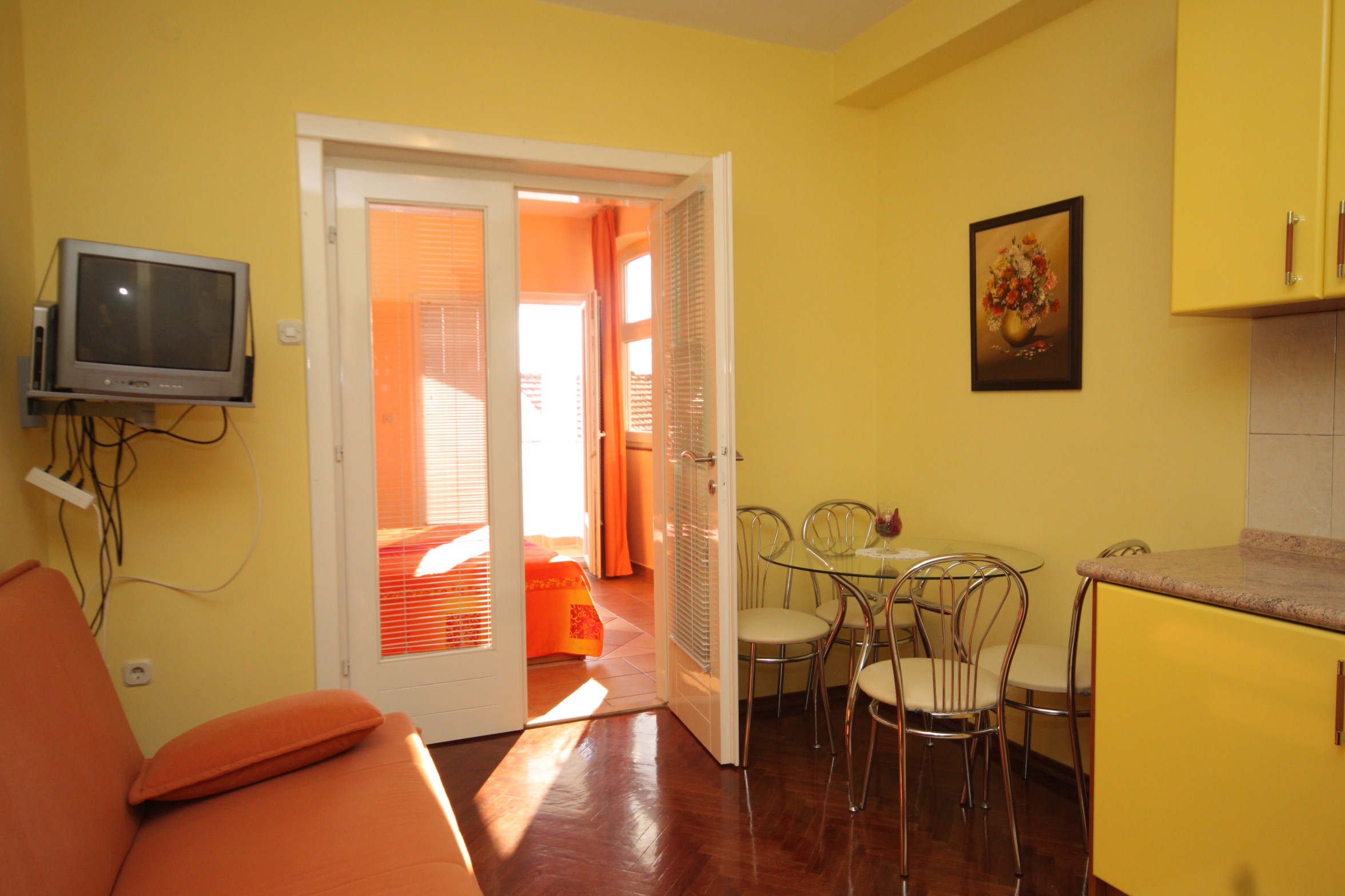Apartment can accommodate 3 guests. Beds are situated in 1 sleeping rooms, but also in the living room, within 24m2. Guests can use a private balcony to enjoy the warm summer evenings. Food can be prepared using barbecue which is shared with other guests too. This accommodation unit welcomes pets at an additional charge. INCLUDED IN THE PRICE: tourist tax, final cleaning, air-conditioning, parking, internet, laundry, iron, ironing board, hairdryer. OBLIGATORY ADDITIONAL COSTS: short stay fee (surcharge depending on a number of booked nights: 30% - 1, 20% - 2, 10% - 3). OPTIONAL ADDITIONAL COSTS: pets (€5.00 per night). The availability of additional services for your chosen dates of stay, as well as their prices (if none are listed) must be checked ahead of time. Any additional services not shown in the price calculation are payable directly to the property owner and only if used by the visitor. Discounts to the base price: free day 28=25 (for stays of 28 days or more, we give you 3 days free of charge for the stay until 31122026).