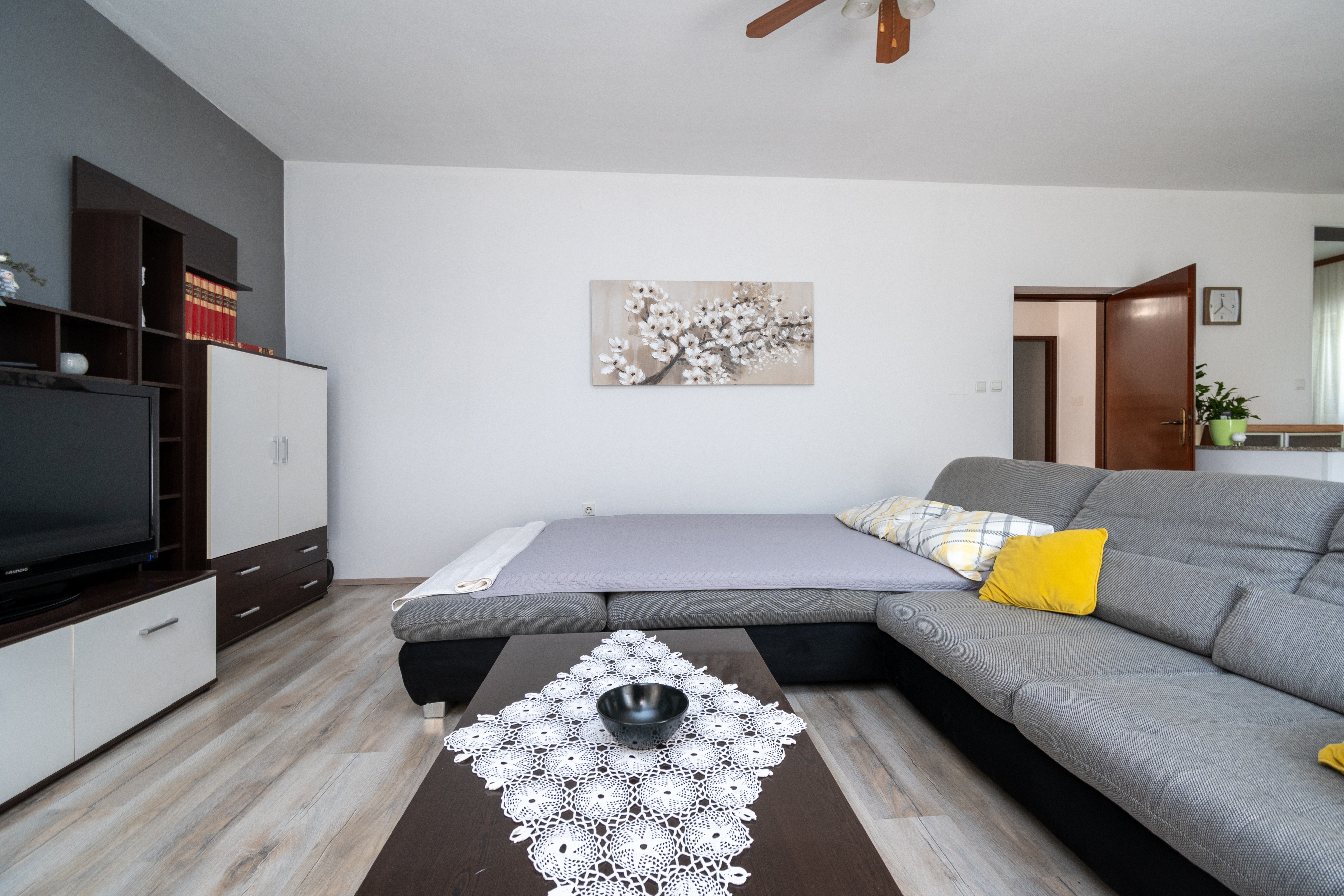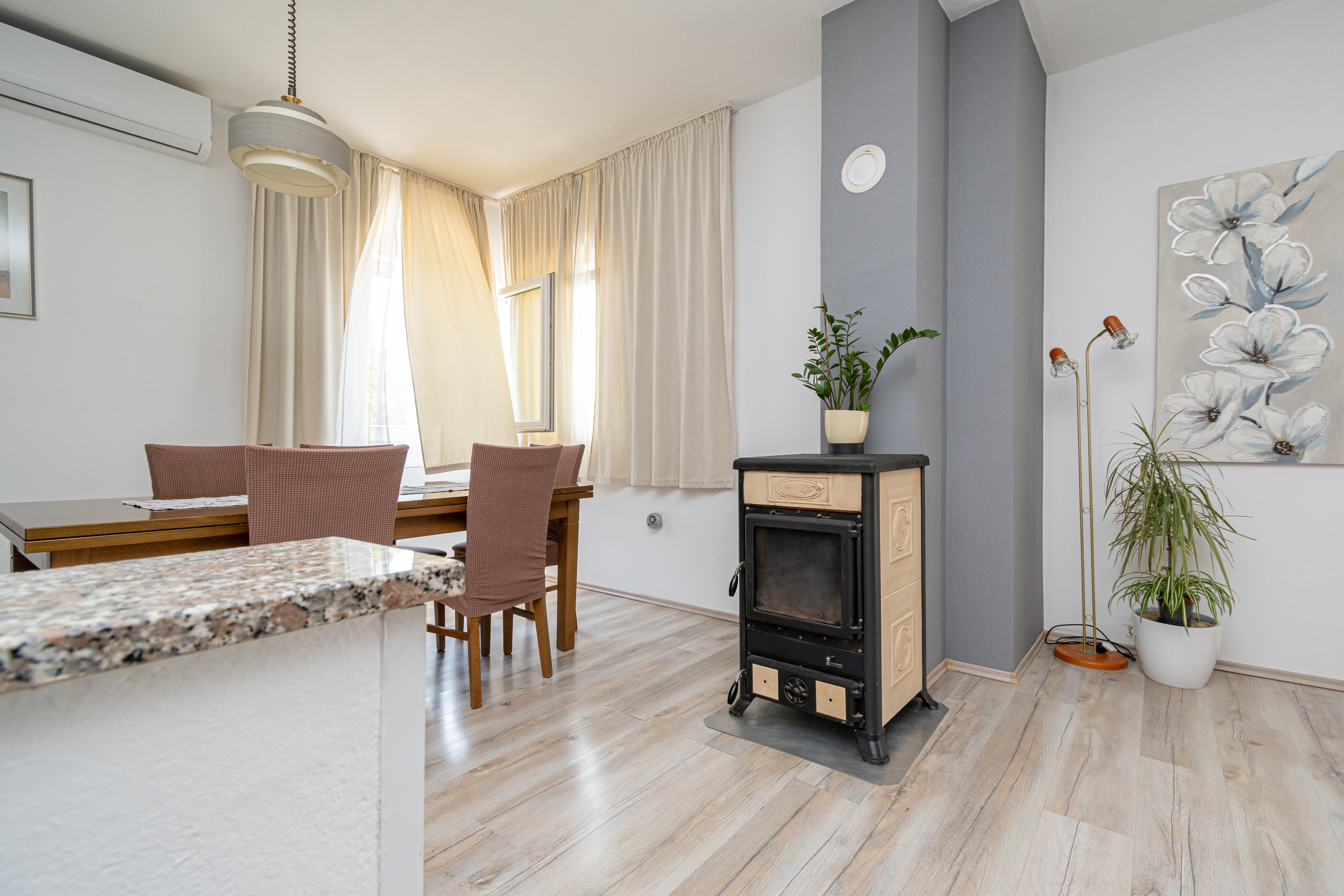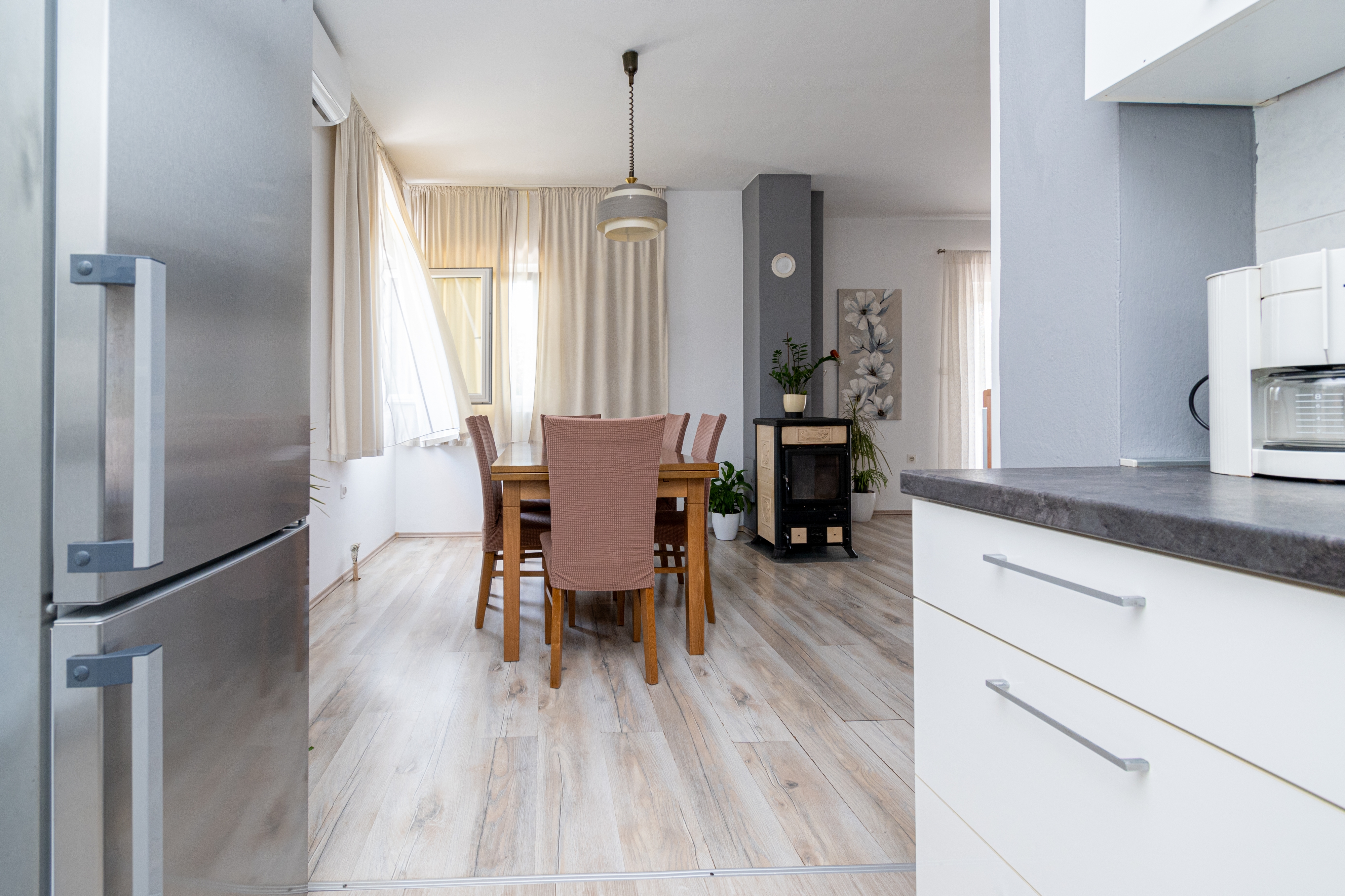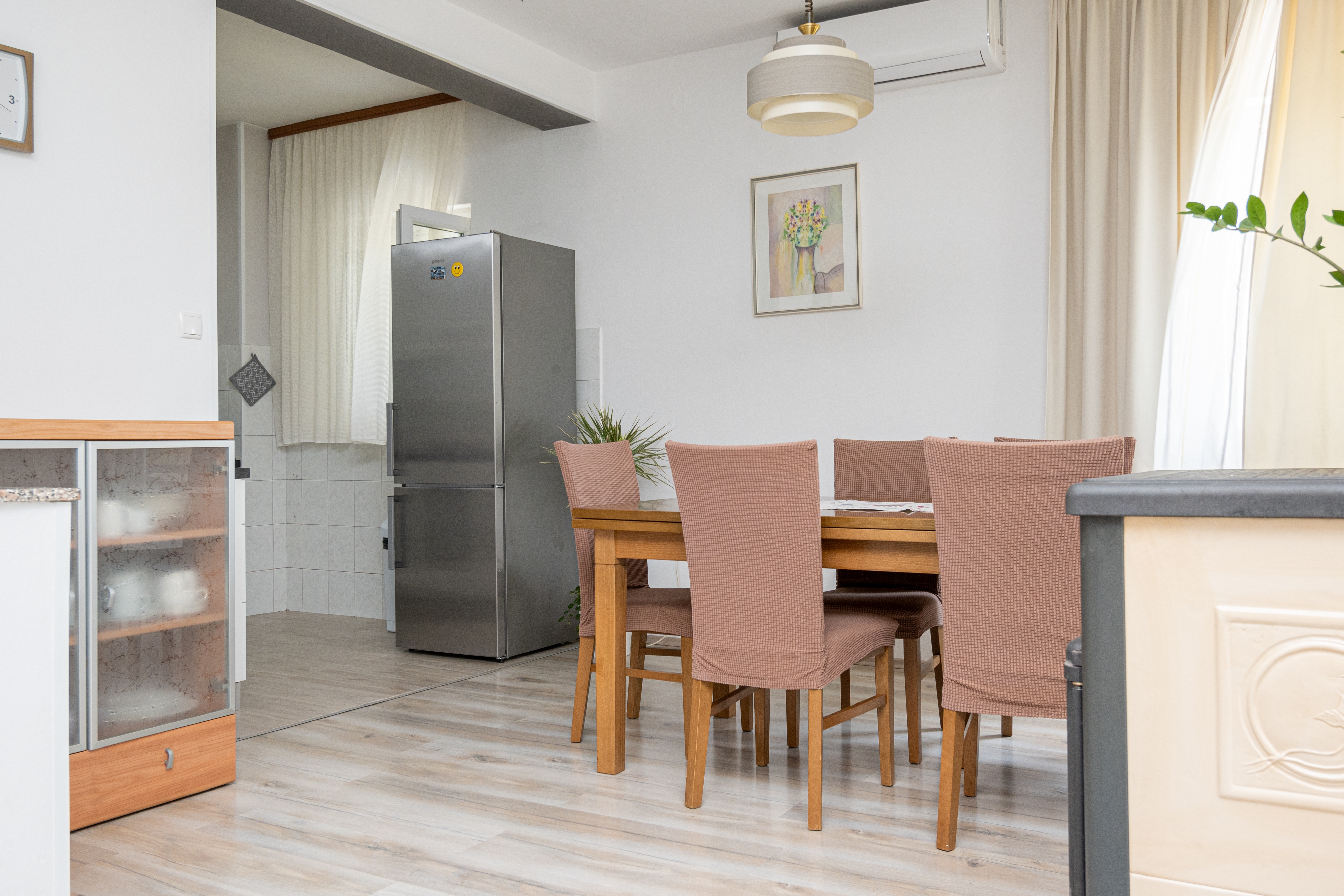 House can accommodate 8 guests. Beds are situated in 3 sleeping rooms, but also in the living room, within 107m2. Guests can use a private terrace to enjoy the warm summer evenings. The house offers the sea view. Food can be prepared using barbecue which is shared with other guests too. This accommodation unit welcomes pets at no additional costs. INCLUDED IN THE PRICE: tourist tax, final cleaning, air-conditioning, parking, internet, pets, iron, ironing board, hairdryer. The availability of additional services for your chosen dates of stay, as well as their prices (if none are listed) must be checked ahead of time. Any additional services not shown in the price calculation are payable directly to the property owner and only if used by the visitor.
