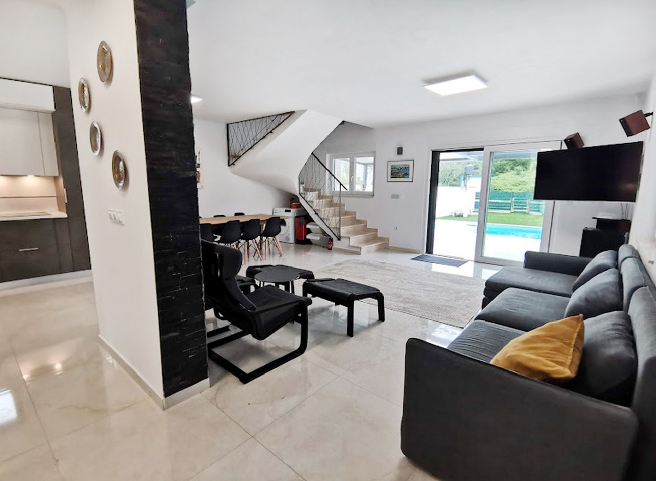 House can accommodate 10 guests. Beds are situated in 5 sleeping rooms, within 111m2. Guests can use a private terrace to enjoy the warm summer evenings. For full enjoyment and relaxation there is a private barbecue for this accommodation guests only. Shared pool is on disposal during stay. INCLUDED IN THE PRICE: tourist tax, final cleaning, air-conditioning, pool, parking, internet, baby cot, iron, ironing board, hairdryer, portable barbecue. The availability of additional services for your chosen dates of stay, as well as their prices (if none are listed) must be checked ahead of time. Any additional services not shown in the price calculation are payable directly to the property owner and only if used by the visitor.