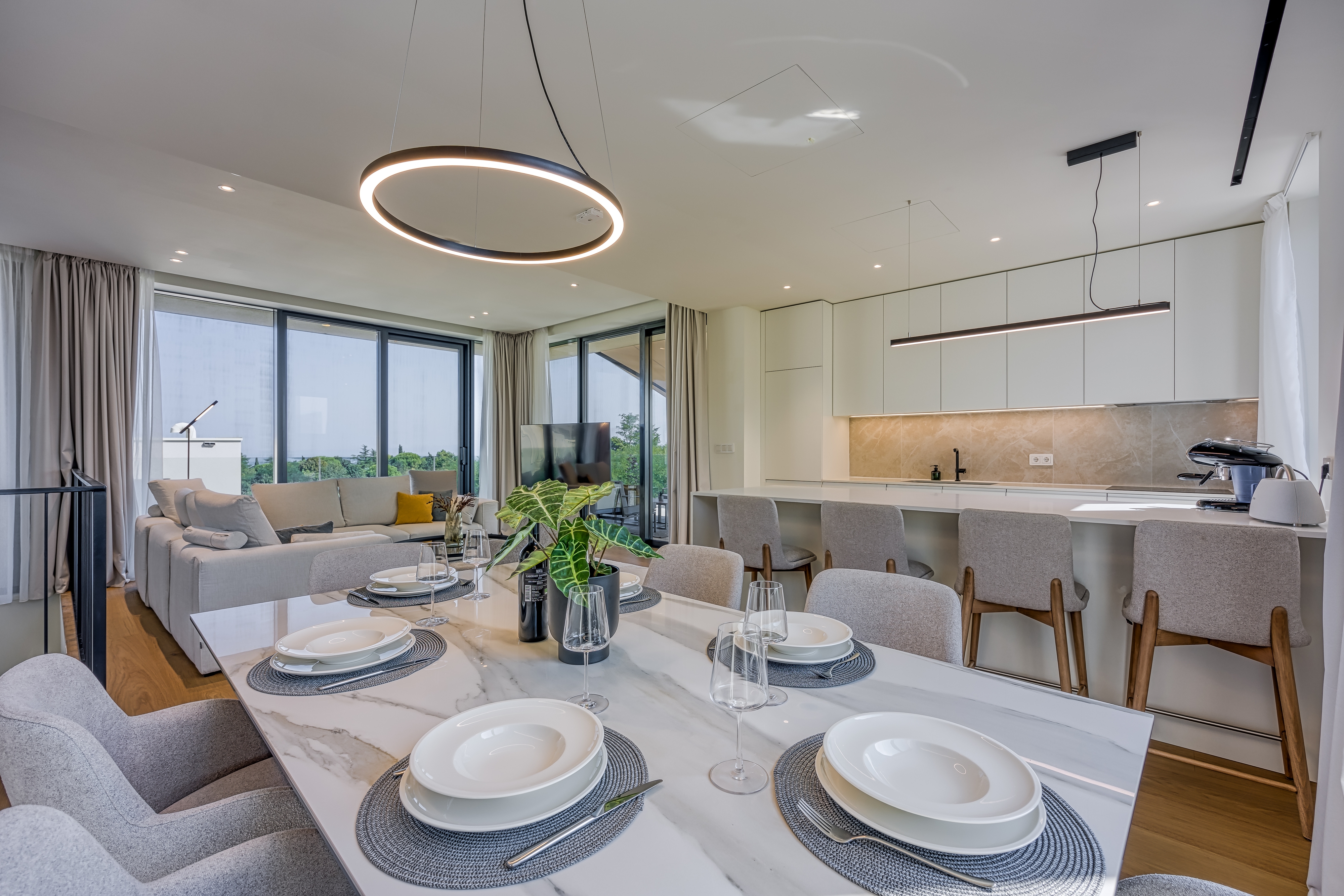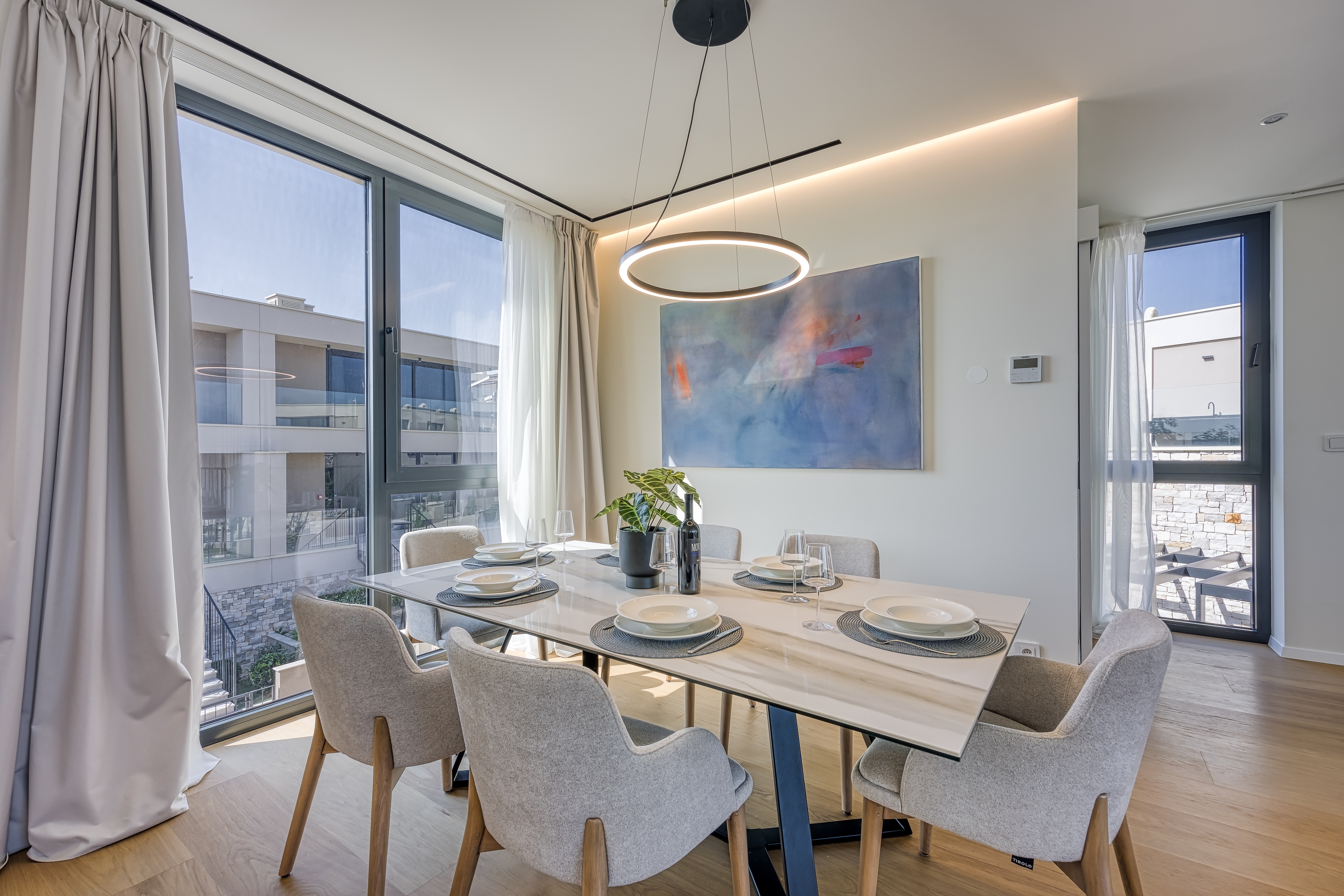 House can accommodate 8 guests. Beds are situated in 3 sleeping rooms, but also in the living room, within 186m2. Guests can use a private terrace to enjoy the warm summer evenings. The house offers the sea view. Shared pool is on disposal during stay. INCLUDED IN THE PRICE: tourist tax, final cleaning, air-conditioning, central heating, pool, parking, internet, iron, ironing board, hairdryer, sunshade, sunchairs. OPTIONAL ADDITIONAL COSTS: breakfast (€30.00, a 50% discount for children aged 4 to 12 years, Children up to age 4 free of charge). The availability of additional services for your chosen dates of stay, as well as their prices (if none are listed) must be checked ahead of time. Any additional services not shown in the price calculation are payable directly to the property owner and only if used by the visitor.