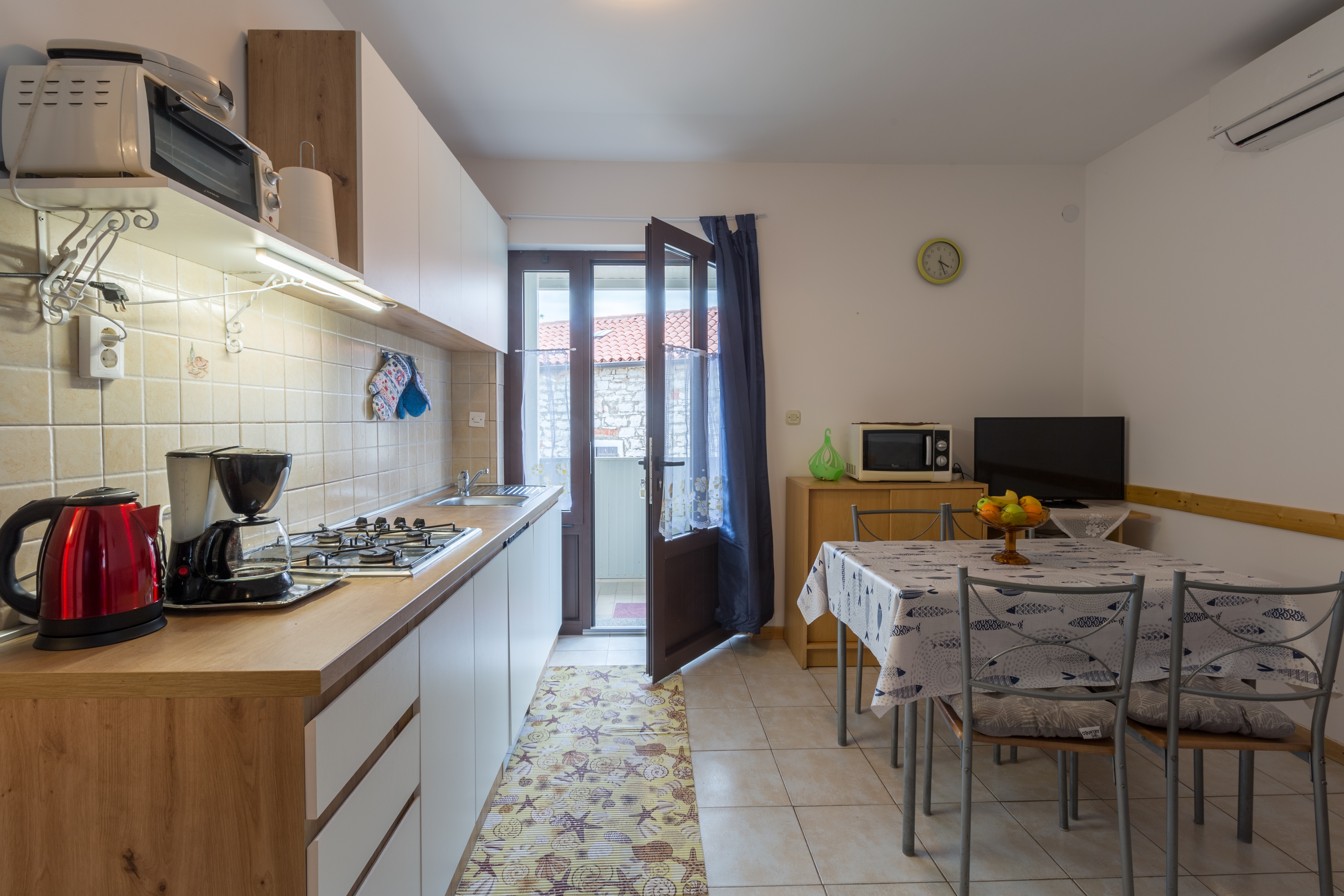Apartment can accommodate 3 guests. Beds are situated in 1 sleeping rooms, but also in the living room, within 31m2. Guests can use a private balcony to enjoy the warm summer evenings. The apartment offers the sea view. Food can be prepared using barbecue which is shared with other guests too. INCLUDED IN THE PRICE: tourist tax, final cleaning, air-conditioning, parking, internet, baby cot, iron, hairdryer, portable barbecue, 1 bed for children (included in the price). OBLIGATORY ADDITIONAL COSTS: short stay fee (surcharge depending on a number of booked nights: 30% - 1, 20% - 2, 10% - 3). The availability of additional services for your chosen dates of stay, as well as their prices (if none are listed) must be checked ahead of time. Any additional services not shown in the price calculation are payable directly to the property owner and only if used by the visitor. Discounts to the base price: free day 14=13 (for reservations of 14 or more days you get one free day for the stay until 31122026).