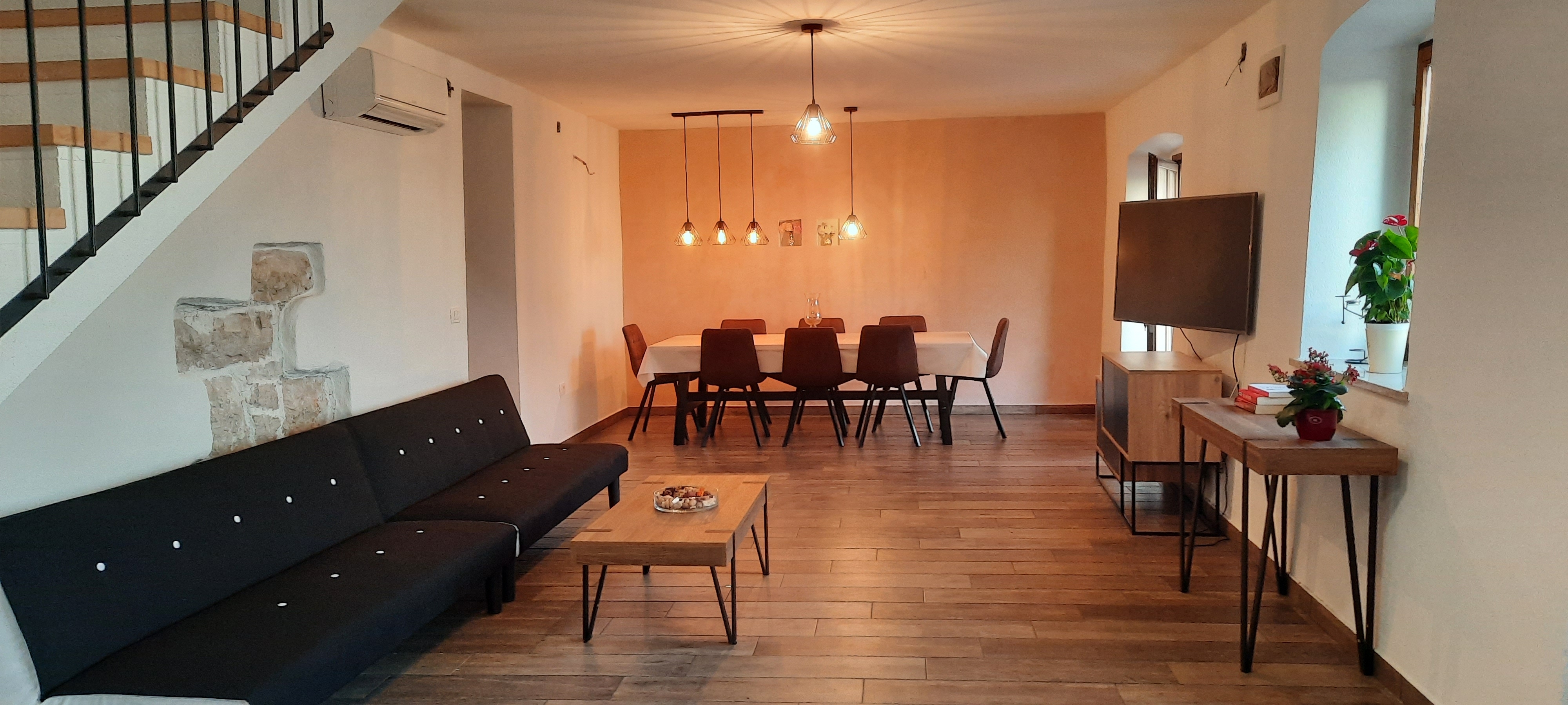 House can accommodate 8 guests. Beds are situated in 4 sleeping rooms, within 141m2. Guests can use a private terrace to enjoy the warm summer evenings. The house offers the sea view. For full enjoyment and relaxation there is a private barbecue for this accommodation guests only. During stay, there is a private pool for relaxation and pleasure. INCLUDED IN THE PRICE: tourist tax, final cleaning, air-conditioning, pool, parking, internet, iron, ironing board, hairdryer, sunchairs. OPTIONAL ADDITIONAL COSTS: additional bed (€10.00 per night). The availability of additional services for your chosen dates of stay, as well as their prices (if none are listed) must be checked ahead of time. Any additional services not shown in the price calculation are payable directly to the property owner and only if used by the visitor.