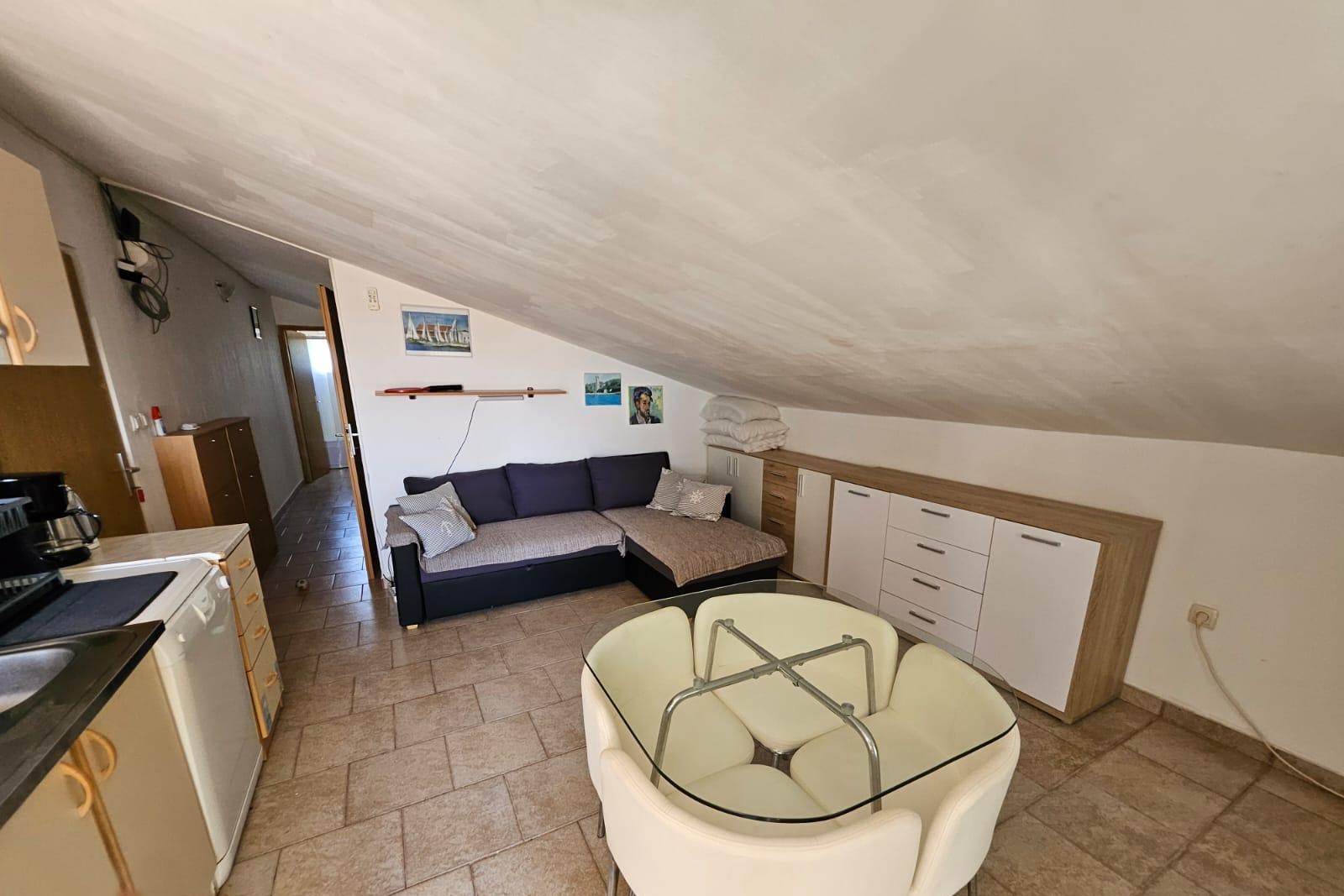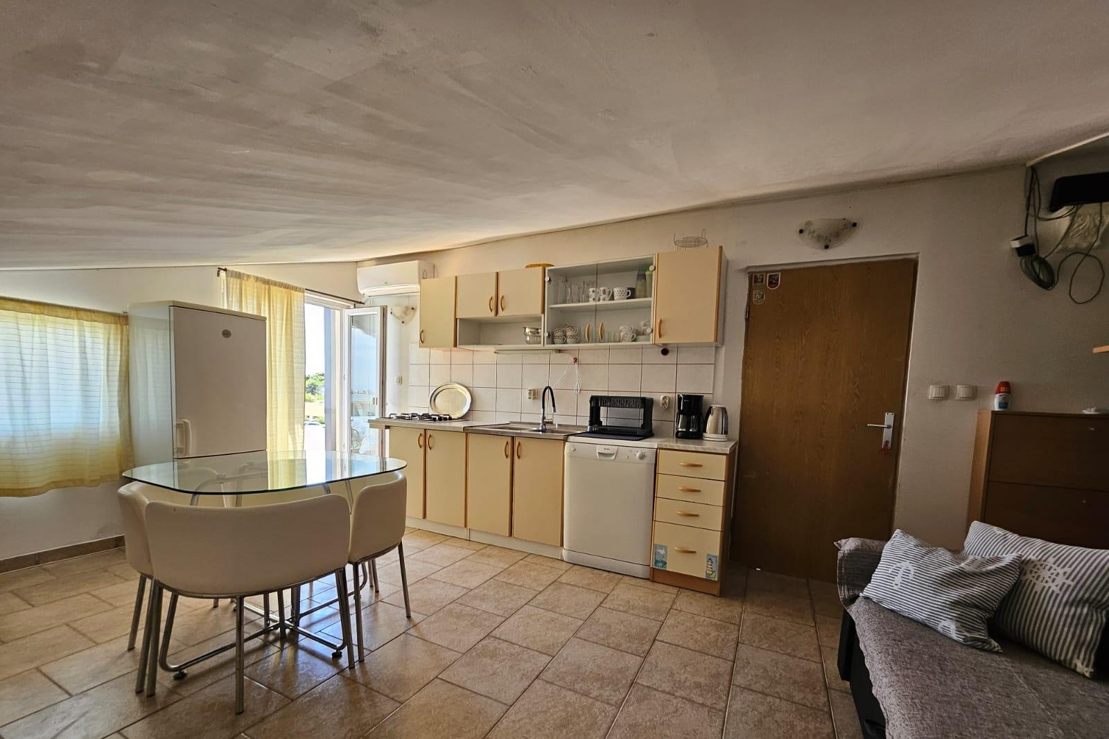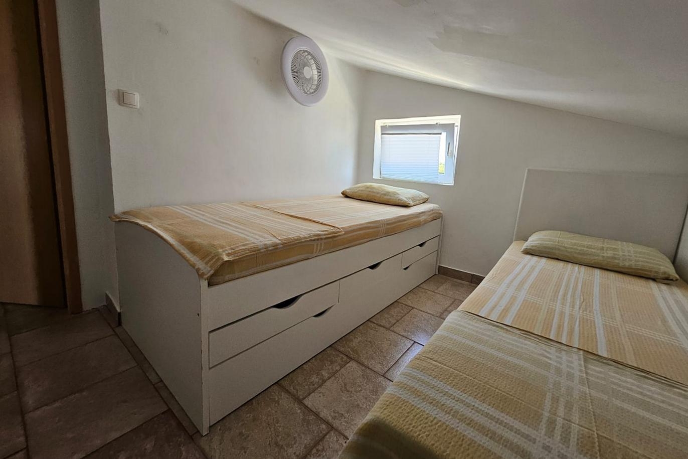 Apartment can accommodate 4 guests. Beds are situated in 2 sleeping rooms, within 43m2. Guests can use a private terrace to enjoy the warm summer evenings. The apartment offers the sea view. Food can be prepared using barbecue which is shared with other guests too. This accommodation unit welcomes pets at an additional charge. INCLUDED IN THE PRICE: tourist tax, final cleaning, air-conditioning, parking, internet, baby cot, iron, ironing board, hairdryer. OBLIGATORY ADDITIONAL COSTS: short stay fee (surcharge depending on a number of booked nights: 30% - 1, 20% - 2, 10% - 3). OPTIONAL ADDITIONAL COSTS: laundry (€5.00 washing), pets (€10.00 per night). The availability of additional services for your chosen dates of stay, as well as their prices (if none are listed) must be checked ahead of time. Any additional services not shown in the price calculation are payable directly to the property owner and only if used by the visitor.
