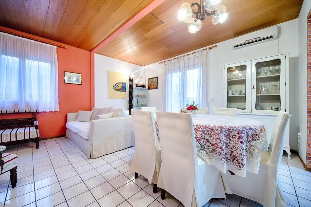 House can accommodate 8 guests. Beds are situated in 4 sleeping rooms, within 133m2. Guests can use a private terrace to enjoy the warm summer evenings. For full enjoyment and relaxation there is a private barbecue for this accommodation guests only. During stay, there is a private pool for relaxation and pleasure. INCLUDED IN THE PRICE: tourist tax, final cleaning, air-conditioning, pool, internet, baby cot, iron, ironing board, hairdryer. The availability of additional services for your chosen dates of stay, as well as their prices (if none are listed) must be checked ahead of time. Any additional services not shown in the price calculation are payable directly to the property owner and only if used by the visitor. Discounts to the base price: free day 14=13 (for reservations of 14 or more days you get one free day for the stay until 31122026).