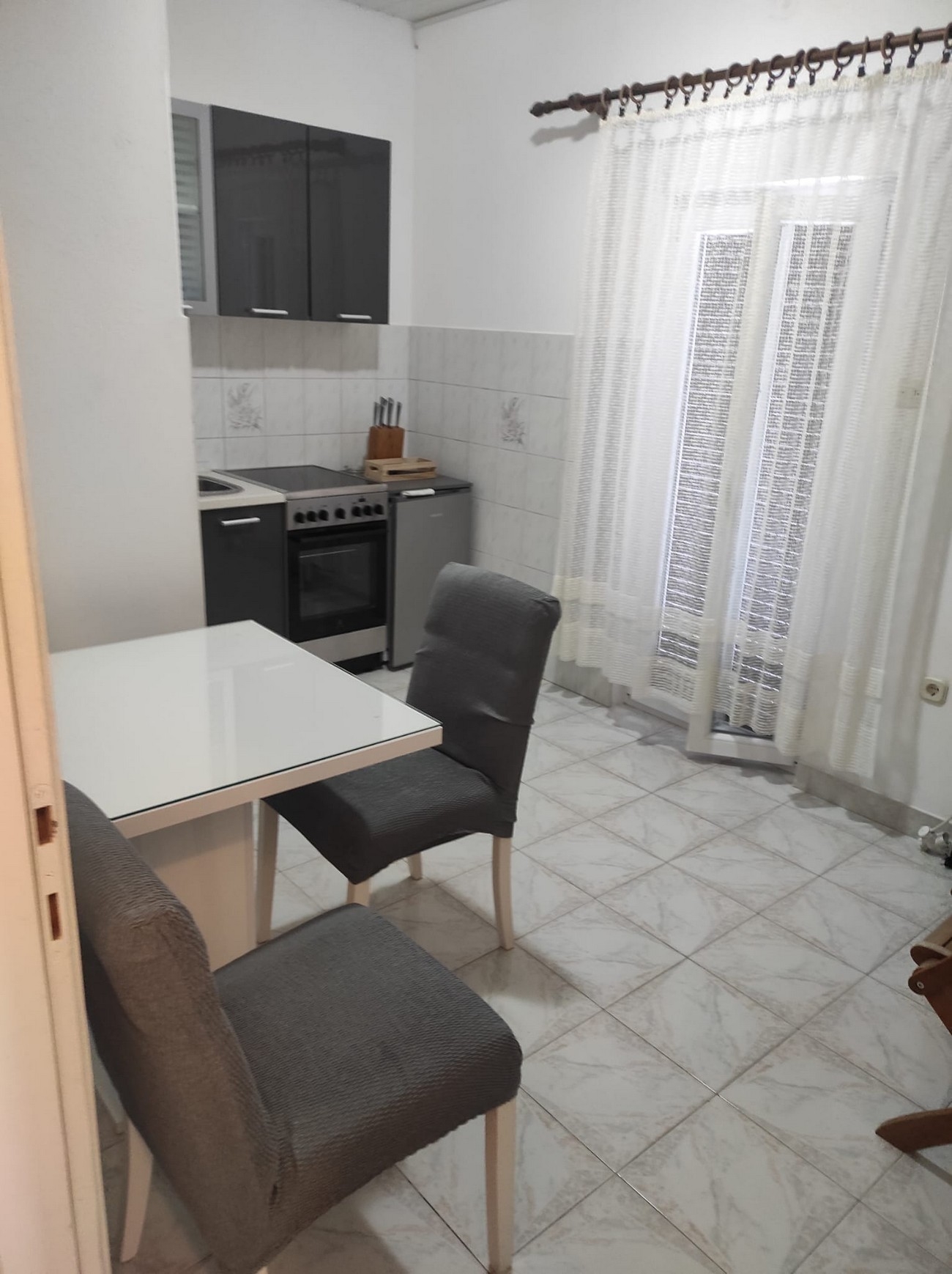 Apartment can accommodate 2 guests. Beds are situated in 1 sleeping rooms, within 27m2. Guests can use a private balcony to enjoy the warm summer evenings. Food can be prepared using barbecue which is shared with other guests too. INCLUDED IN THE PRICE: tourist tax, final cleaning, air-conditioning, internet, iron, ironing board, hairdryer. OBLIGATORY ADDITIONAL COSTS: short stay fee (surcharge depending on a number of booked nights: 30% - 1, 20% - 2, 10% - 3). The availability of additional services for your chosen dates of stay, as well as their prices (if none are listed) must be checked ahead of time. Any additional services not shown in the price calculation are payable directly to the property owner and only if used by the visitor.