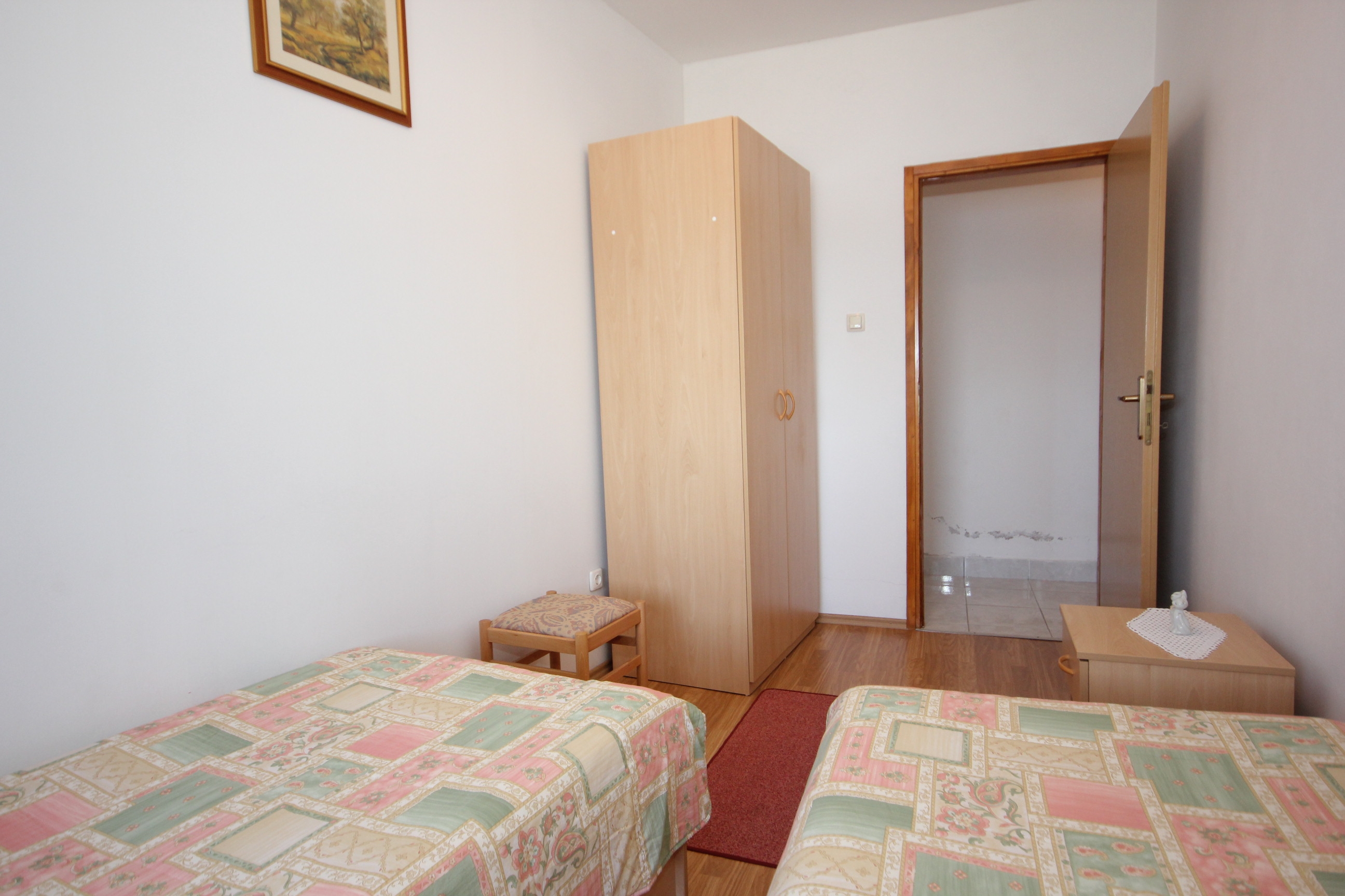 Apartment can accommodate 4 guests. Beds are situated in 2 sleeping rooms, within 46m2. Guests can use a private balcony to enjoy the warm summer evenings. The apartment offers the sea view. Food can be prepared using barbecue which is shared with other guests too. This accommodation unit welcomes pets at an additional charge. INCLUDED IN THE PRICE: tourist tax, final cleaning, air-conditioning, parking, garage, internet, iron, ironing board, hairdryer. OBLIGATORY ADDITIONAL COSTS: short stay fee (surcharge depending on a number of booked nights: 30% - 1, 20% - 2, 10% - 3). OPTIONAL ADDITIONAL COSTS: boat mooring (€10.00 per night), pets (€10.00 per night). The availability of additional services for your chosen dates of stay, as well as their prices (if none are listed) must be checked ahead of time. Any additional services not shown in the price calculation are payable directly to the property owner and only if used by the visitor.