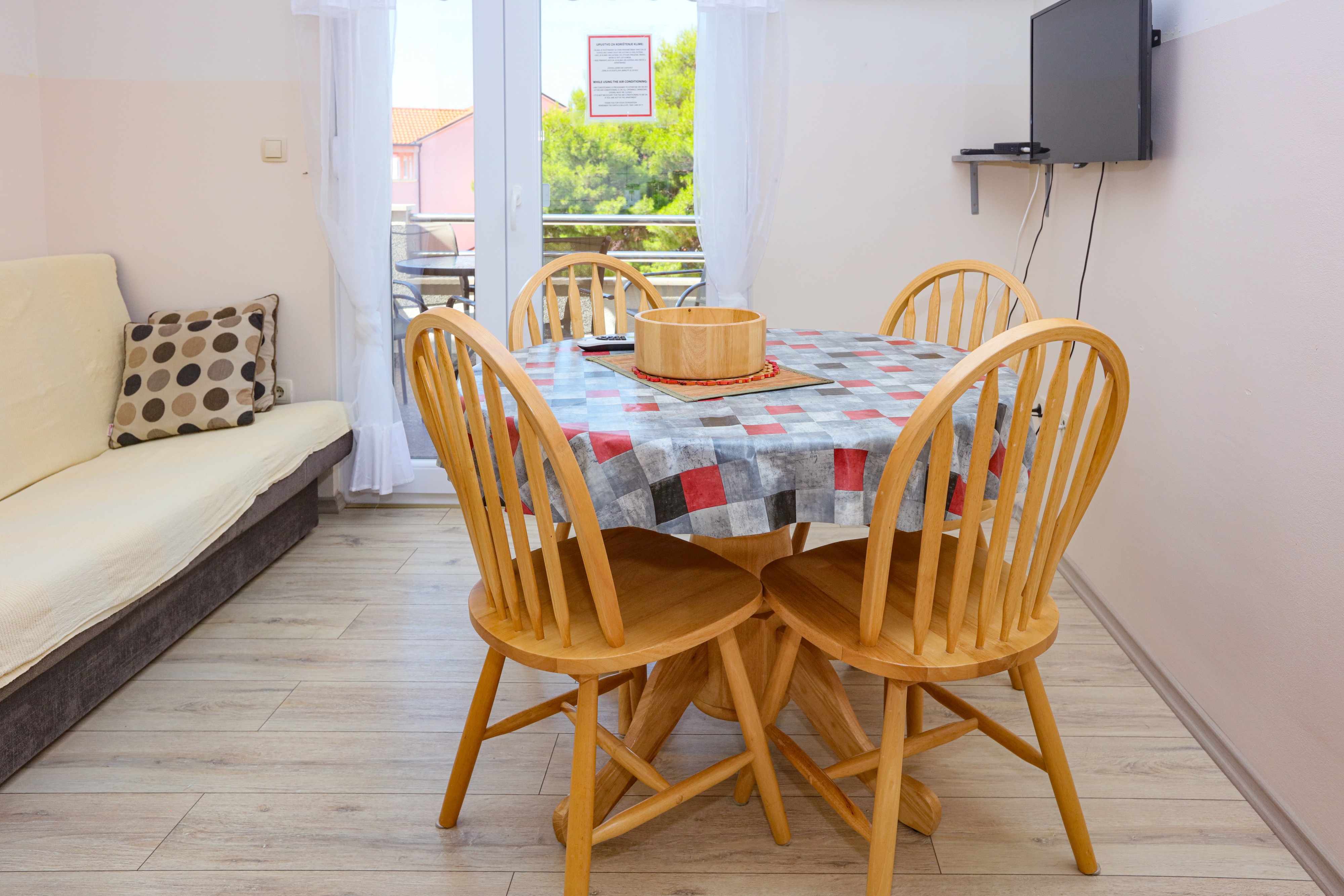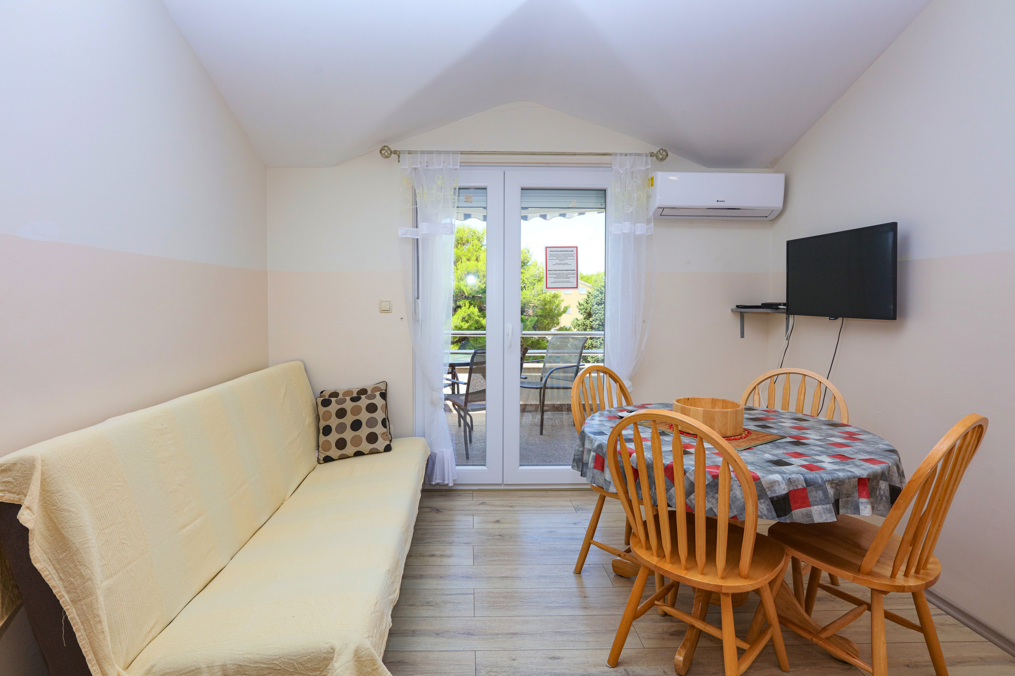 Apartment can accommodate 4 guests. Beds are situated in 1 sleeping rooms, but also in the living room, within 36m2. Guests can use a private balcony to enjoy the warm summer evenings. Food can be prepared using barbecue which is shared with other guests too. This accommodation unit welcomes pets at no additional costs. INCLUDED IN THE PRICE: tourist tax, final cleaning, air-conditioning, parking, internet, laundry, pets, baby cot, additional bed, hairdryer. The availability of additional services for your chosen dates of stay, as well as their prices (if none are listed) must be checked ahead of time. Any additional services not shown in the price calculation are payable directly to the property owner and only if used by the visitor. Discounts to the base price: free day 14=13 (for reservations of 14 or more days you get one free day for the stay until 31122026).