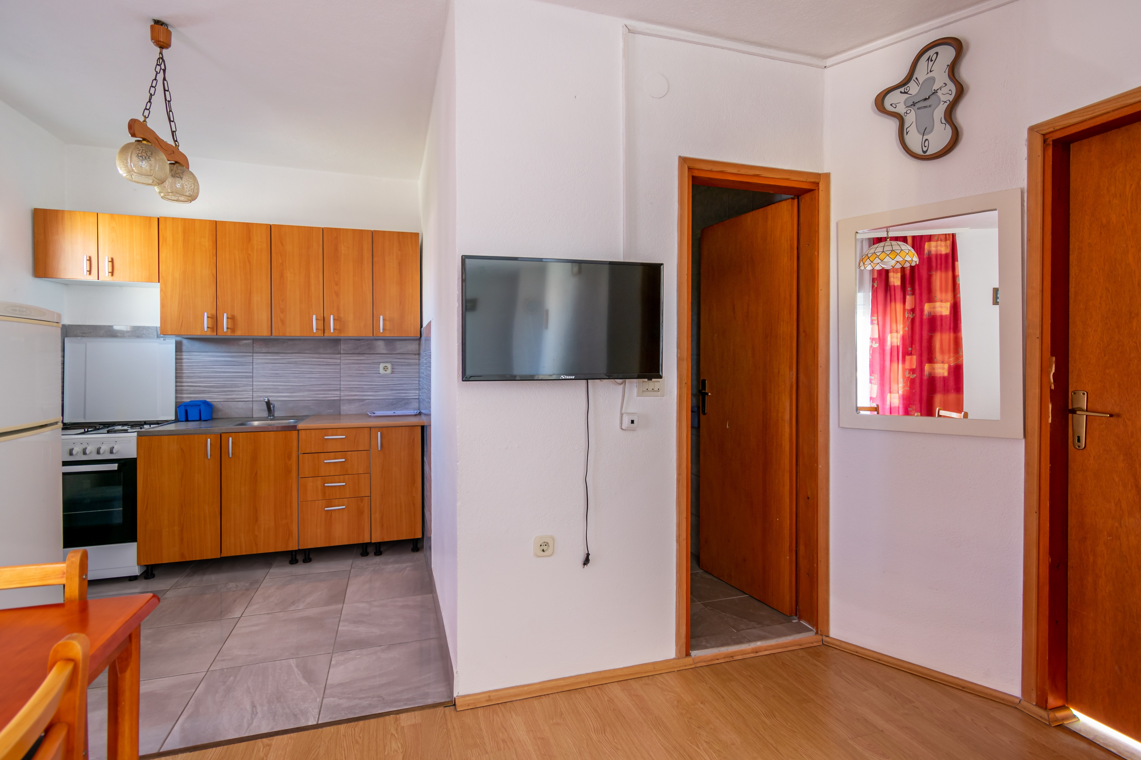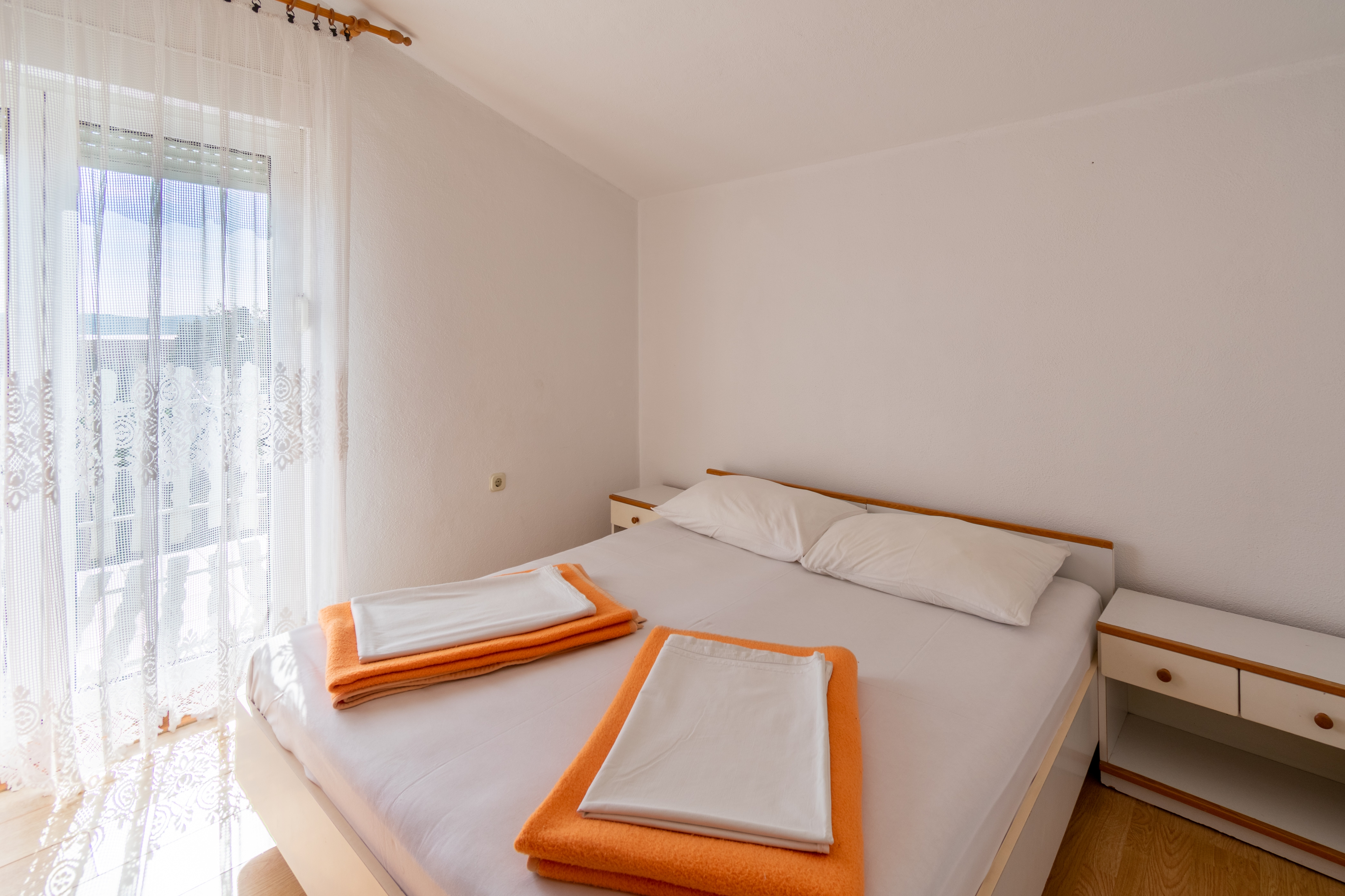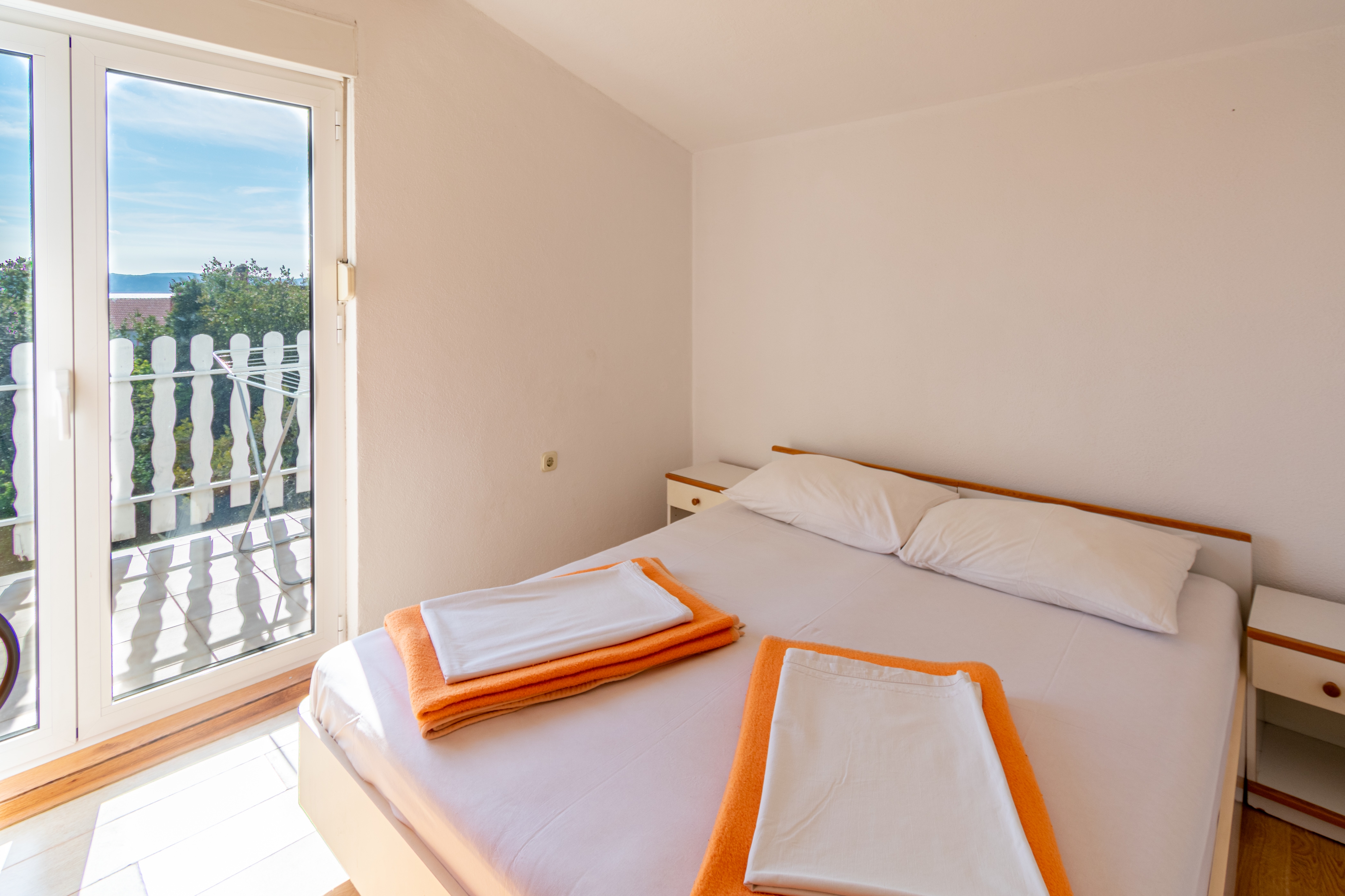 Apartment can accommodate 5 guests. Beds are situated in 2 sleeping rooms, but also in the dining room, within 38m2. Guests can use a private terrace to enjoy the warm summer evenings. The apartment offers the sea view. Food can be prepared using barbecue which is shared with other guests too. INCLUDED IN THE PRICE: tourist tax, final cleaning, parking, internet, baby cot, additional bed, iron, ironing board, hairdryer, portable barbecue. OBLIGATORY ADDITIONAL COSTS: short stay fee (surcharge depending on a number of booked nights: 30% - 1, 20% - 2, 10% - 3). OPTIONAL ADDITIONAL COSTS: air-conditioning (€5.00 per night). The availability of additional services for your chosen dates of stay, as well as their prices (if none are listed) must be checked ahead of time. Any additional services not shown in the price calculation are payable directly to the property owner and only if used by the visitor. Discounts to the base price: free day 21=19 (for reservations of 21 or more days you get 2 free days for the stay until 31122026).
