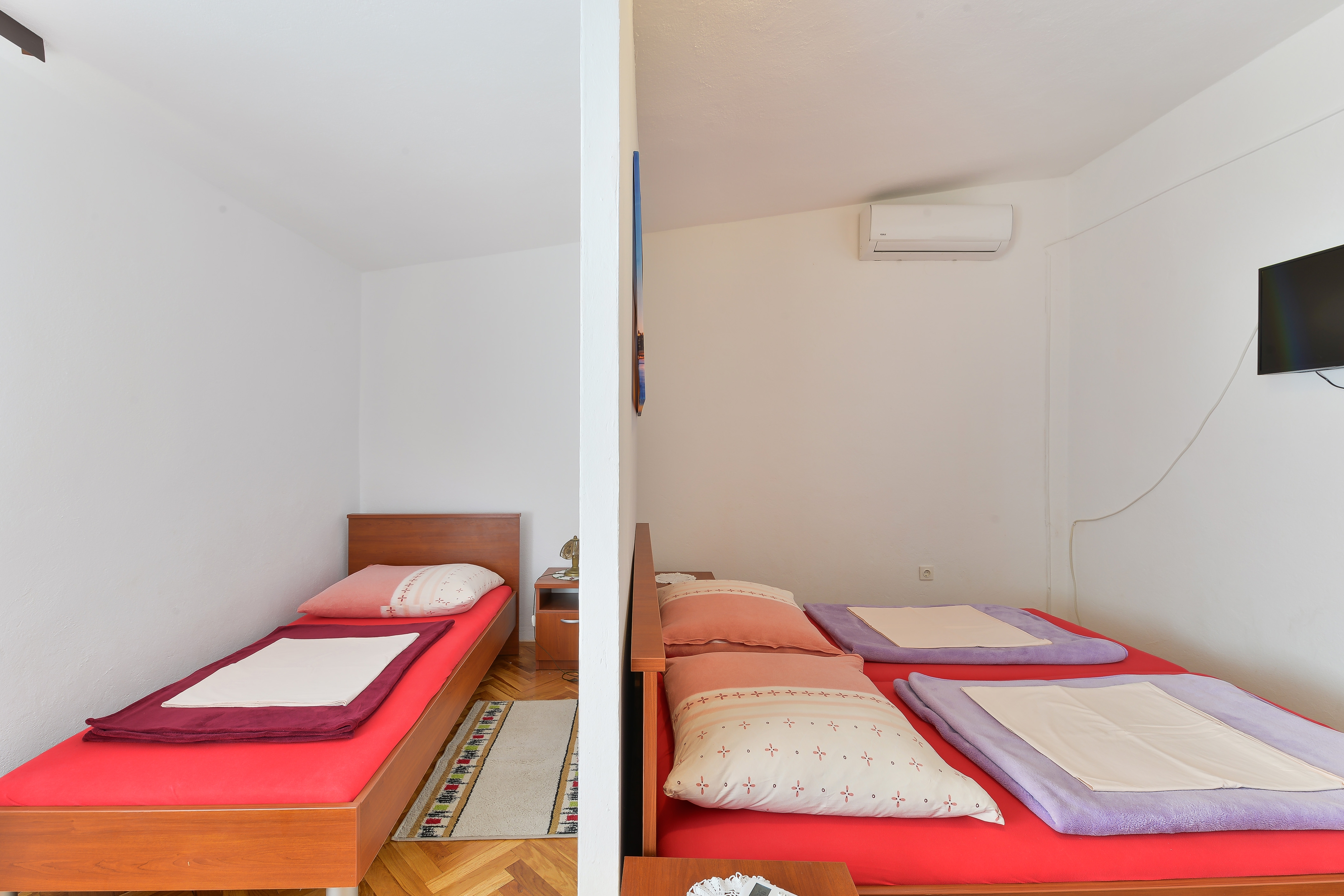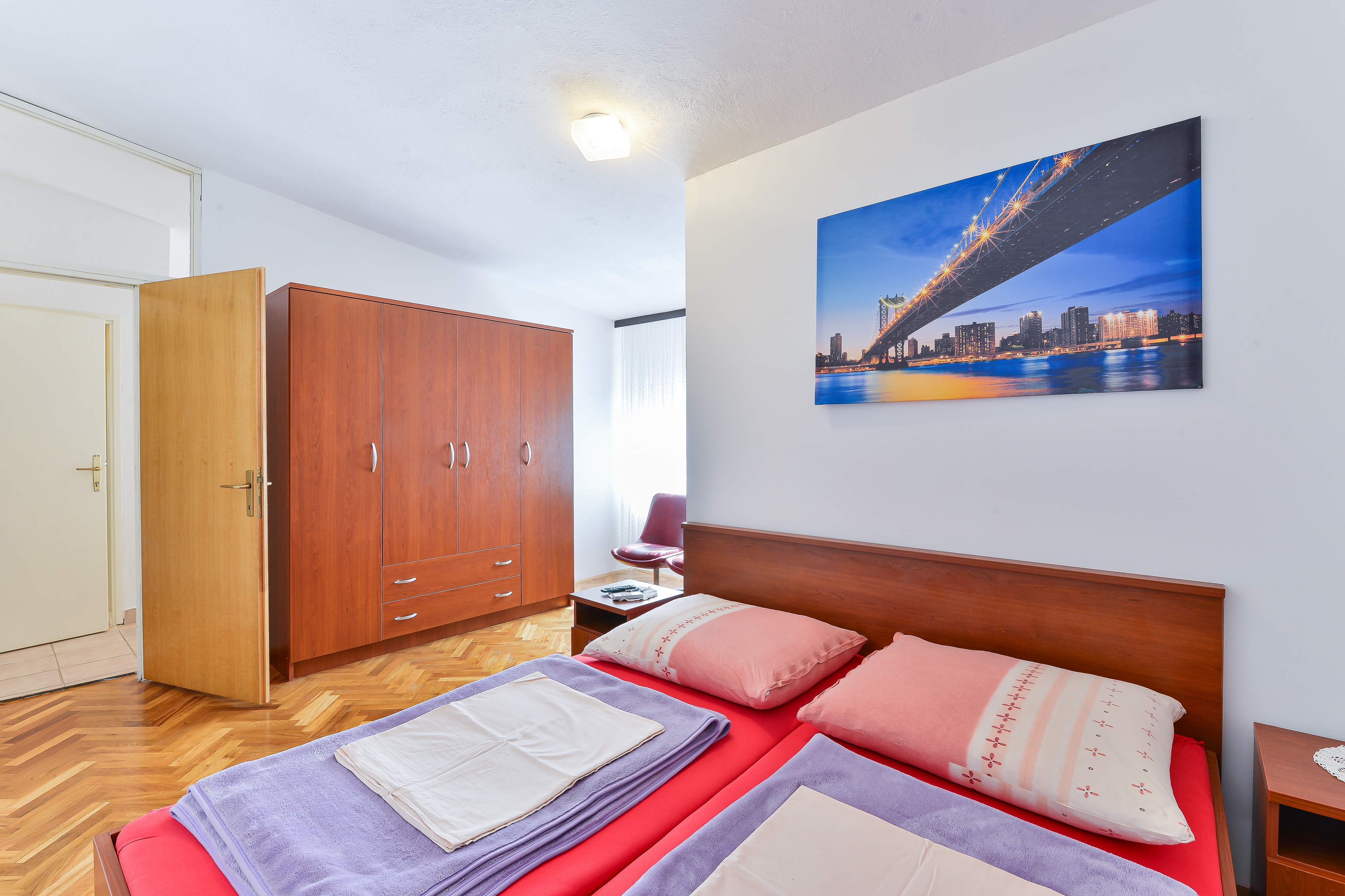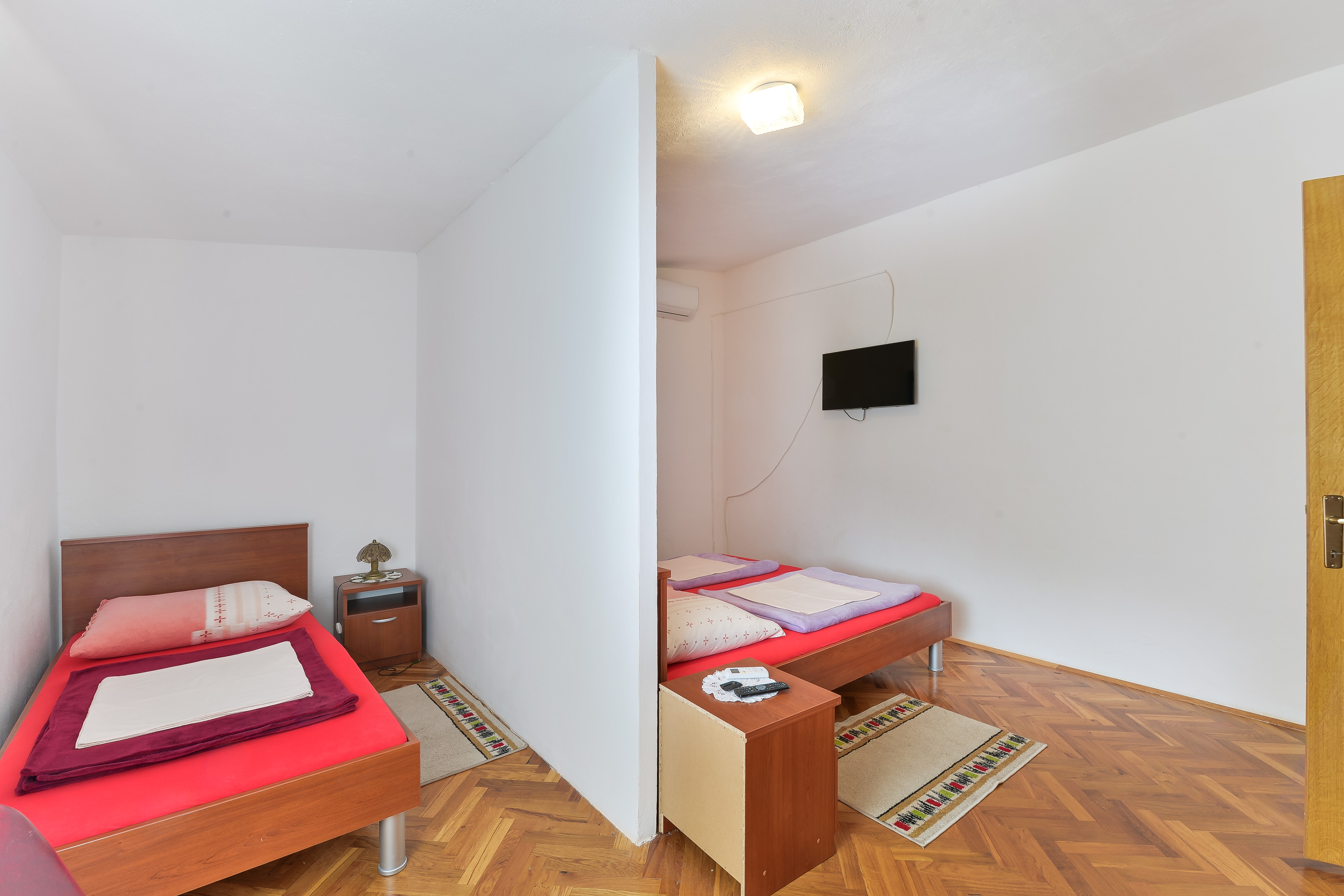 Apartment can accommodate 4 guests. Beds are situated in 1 sleeping rooms, but also in the dining room, within 32m2. Food can be prepared using barbecue which is shared with other guests too. This accommodation unit welcomes pets at an additional charge. Reserved accommodation unit has a shared terrace. INCLUDED IN THE PRICE: tourist tax, final cleaning, air-conditioning, parking, internet. OPTIONAL ADDITIONAL COSTS: pets (€5.00 per night). The availability of additional services for your chosen dates of stay, as well as their prices (if none are listed) must be checked ahead of time. Any additional services not shown in the price calculation are payable directly to the property owner and only if used by the visitor.