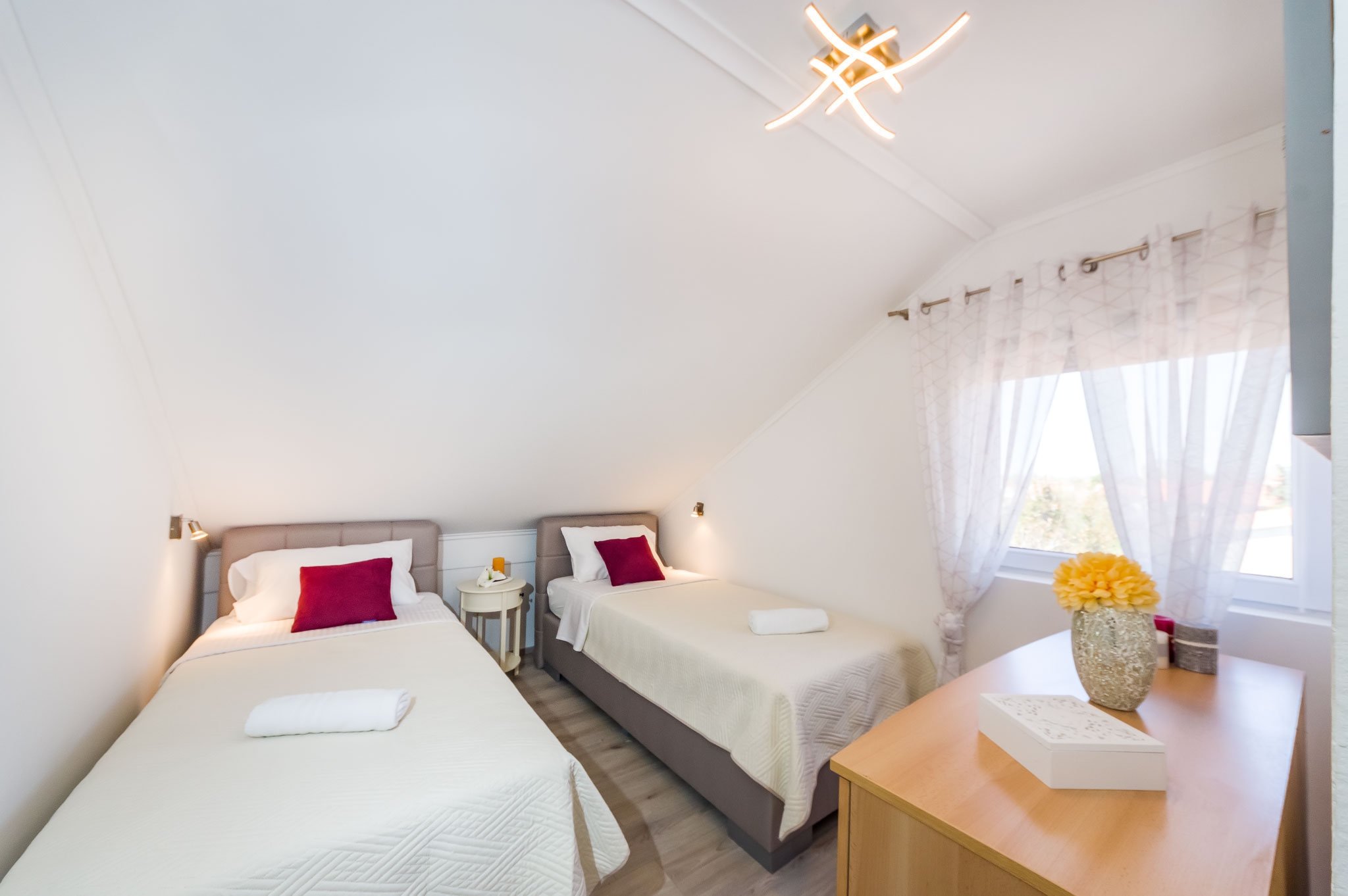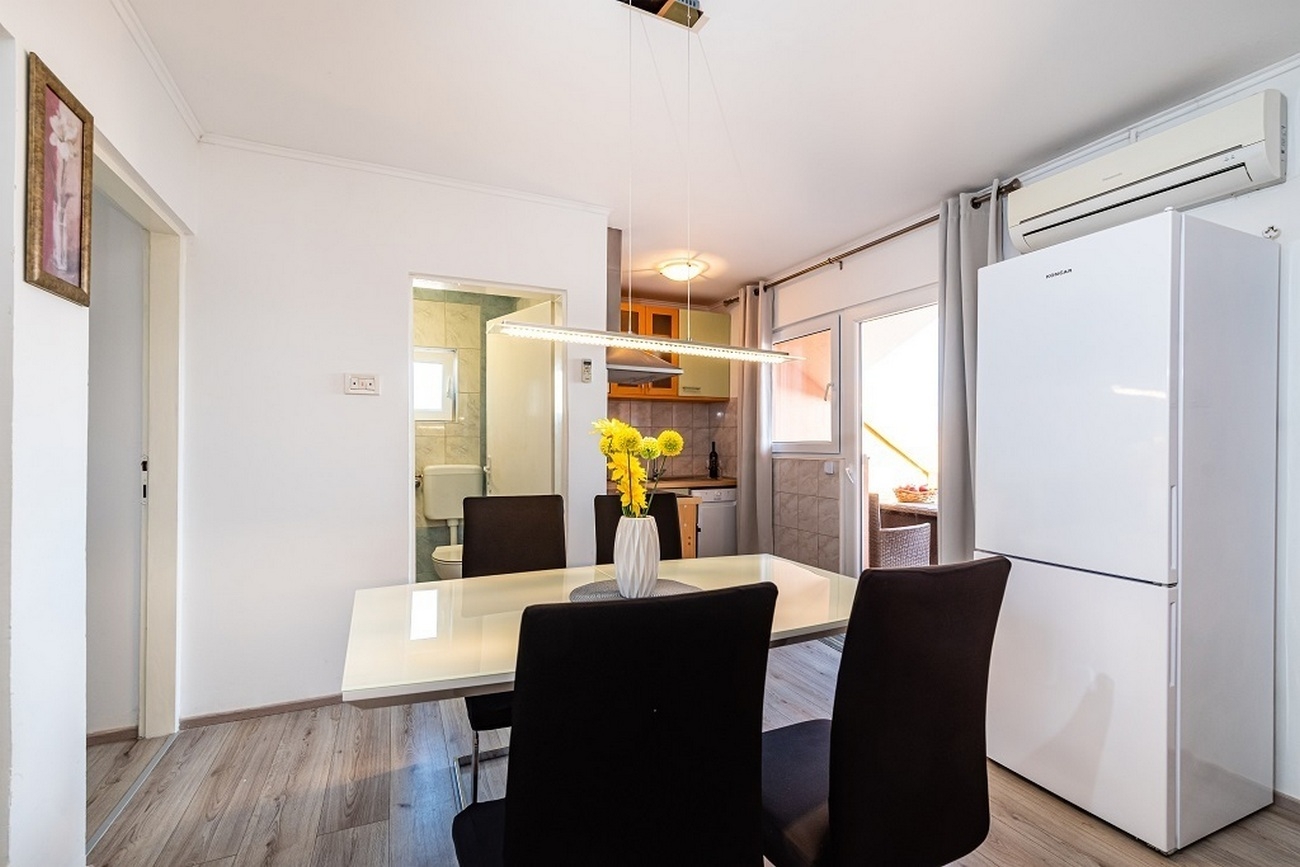 Apartment can accommodate 4 guests. Beds are situated in 2 sleeping rooms, within 41m2. Guests can use a private terrace to enjoy the warm summer evenings. Food can be prepared using barbecue which is shared with other guests too. INCLUDED IN THE PRICE: tourist tax, final cleaning, air-conditioning, parking, internet, baby cot. OBLIGATORY ADDITIONAL COSTS: short stay fee (surcharge depending on a number of booked nights: 30% - 1, 20% - 2, 10% - 3). OPTIONAL ADDITIONAL COSTS: laundry (€3.00 washing). The availability of additional services for your chosen dates of stay, as well as their prices (if none are listed) must be checked ahead of time. Any additional services not shown in the price calculation are payable directly to the property owner and only if used by the visitor.