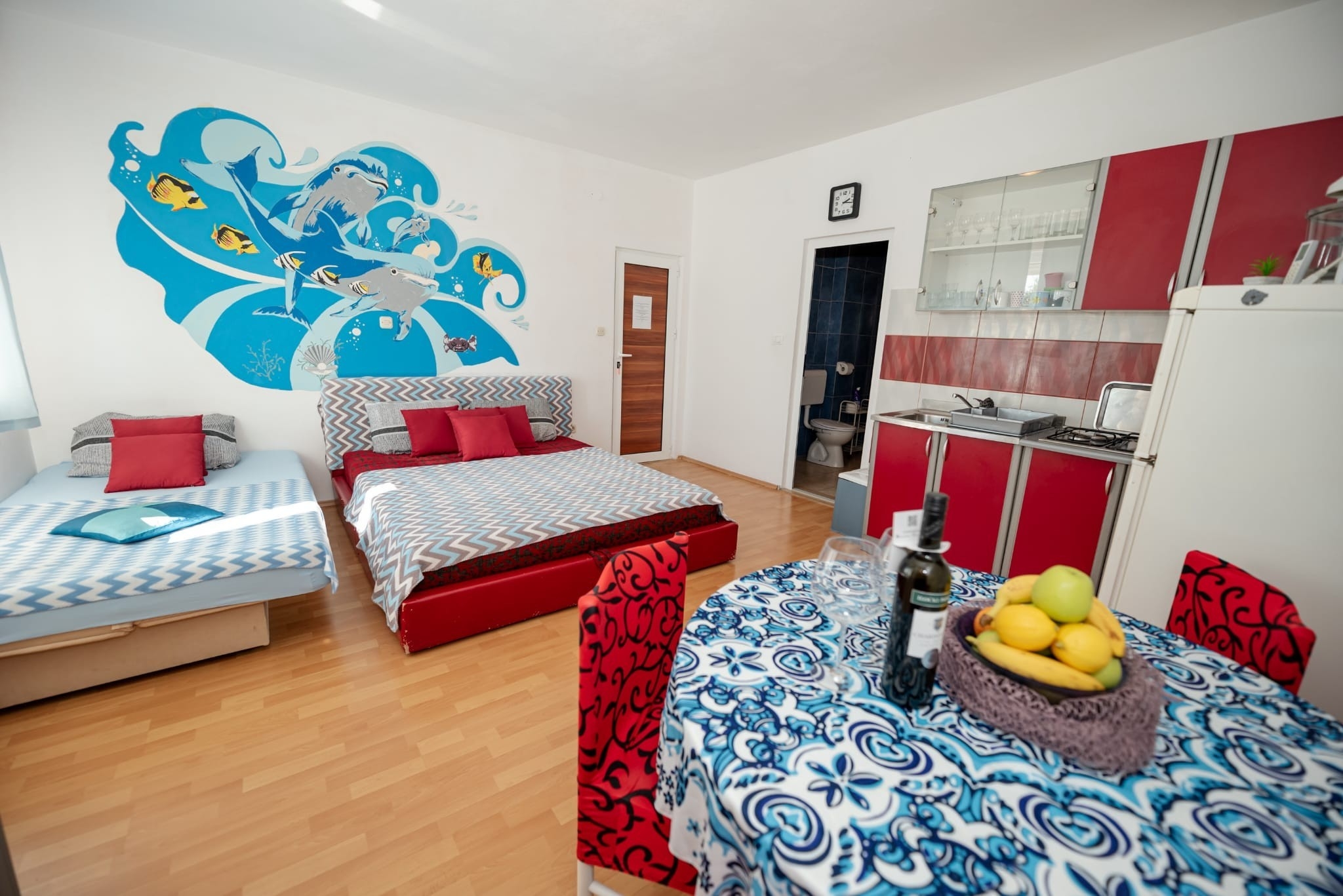 Studio flat can accommodate 3 guests. Beds are situated in living room, within 28m2. Guests can use a private terrace to enjoy the warm summer evenings. Food can be prepared using barbecue which is shared with other guests too. Shared pool is on disposal during stay. INCLUDED IN THE PRICE: tourist tax, final cleaning, air-conditioning, pool, parking, internet, hairdryer. The availability of additional services for your chosen dates of stay, as well as their prices (if none are listed) must be checked ahead of time. Any additional services not shown in the price calculation are payable directly to the property owner and only if used by the visitor.