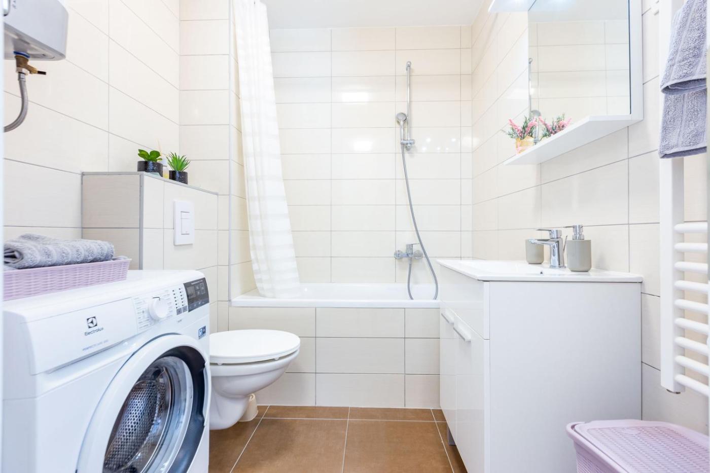 Apartment with Balcony. This air-conditioned apartment comes with 1 living room, 1 separate bedroom and 1 bathroom with a bath. Guests can make meals in the kitchen that features a stovetop, a refrigerator, kitchenware and a microwave. The apartment has carpeted floors, a seating area with a TV, a washing machine, a tea and coffee maker as well as city views. The unit has 2 beds.